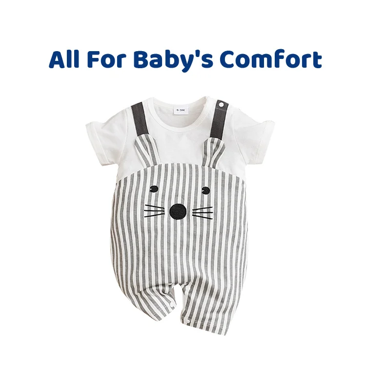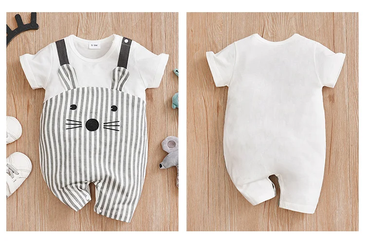 0-18 Baby Jumpsuit Cute Cartoon Shoulder Strap Mouse Cotton Comfortable Boy And Girl Summer Short Sleeved Newborn Clothes