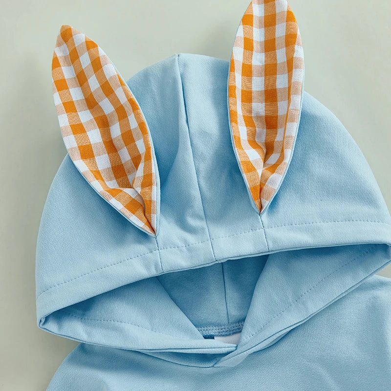 0-18M Newborn Baby Boys Easter Hooded Romper Long Sleeve Bunny Carrot Embrolidery Casual Jumpsuit