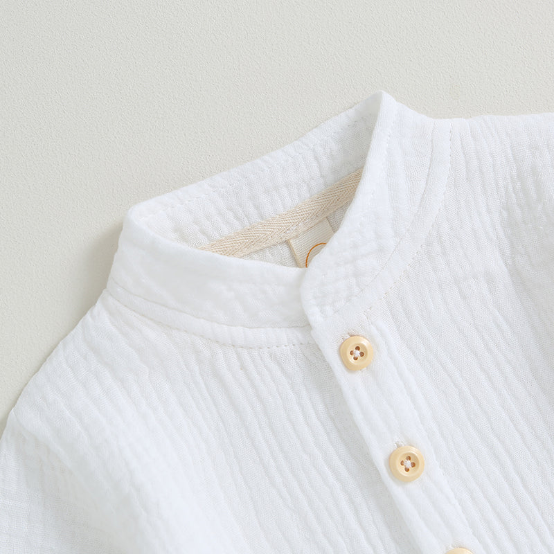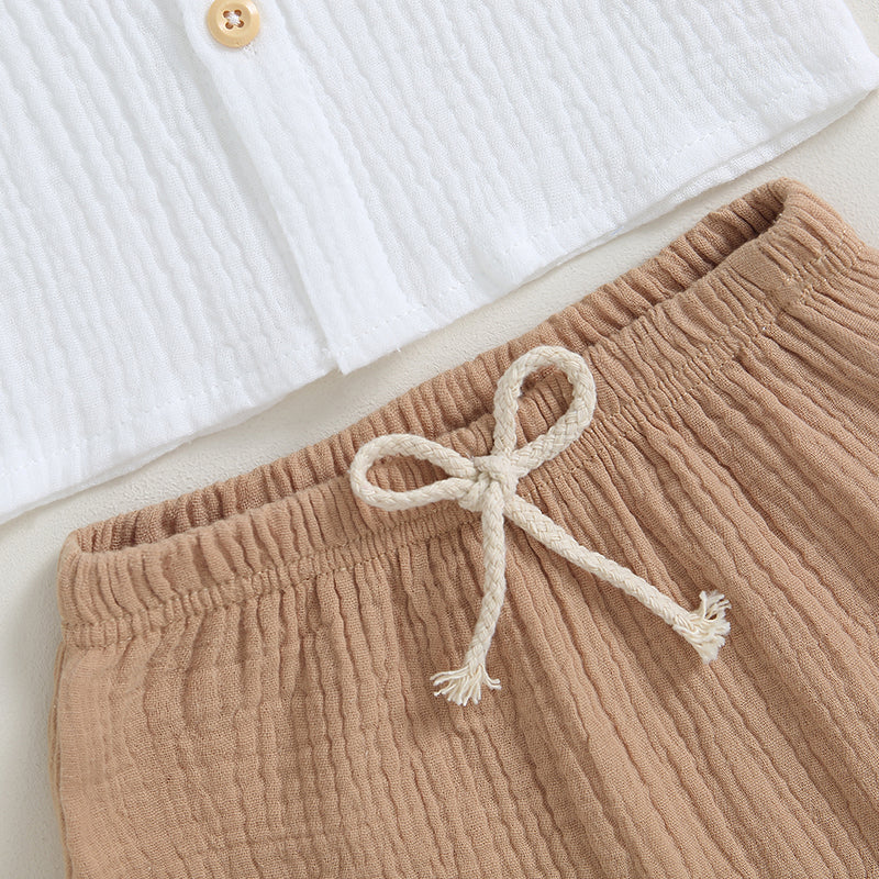 0-4Y Kids Boys Summer Fall Outfits Baby Solid Color Buttons Long Sleeve Shirts Tops + Elastic Waist Long Pants Boys Clothes Sets