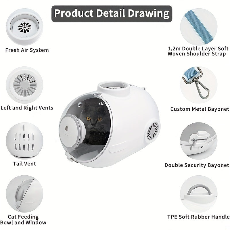 1 PCS 24L Breathable Submarine Cat Backpack Carrier - Ventilated Space Capsule for Small Medium Cats, Dogs, Puppies, Perfect for Traveling, Camping, Outdoors, Walking