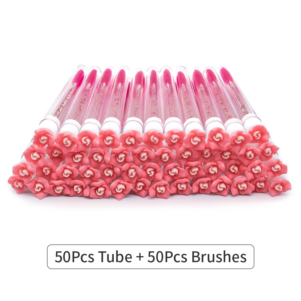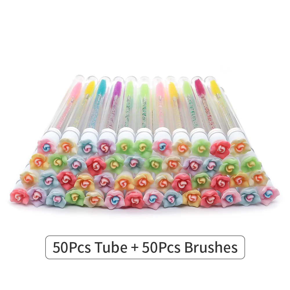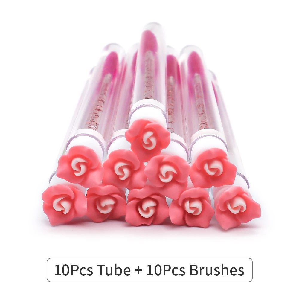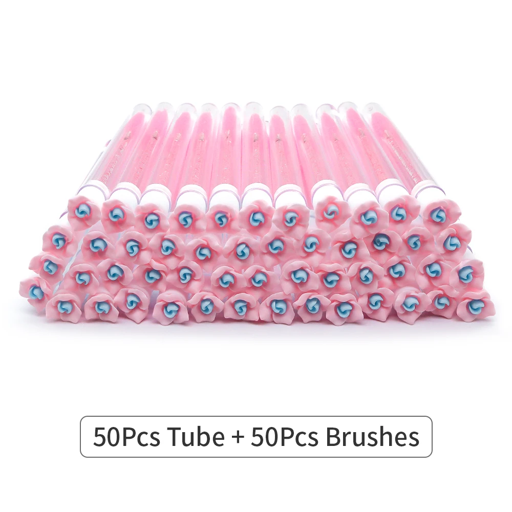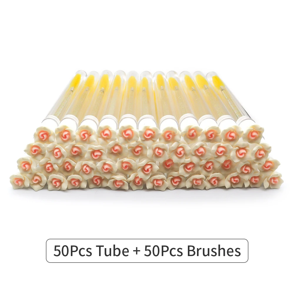 10/50Pcs Flower Eyelash Brush Tube Disposable Mascara Wands Tube Reusable Lash Spoolies Brush Dust-proof Cleaner Storage Tubes