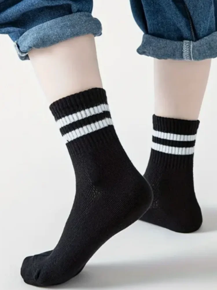 10 pairs of autumn and winter style children breathable simple style college style striped children tube socks men and women