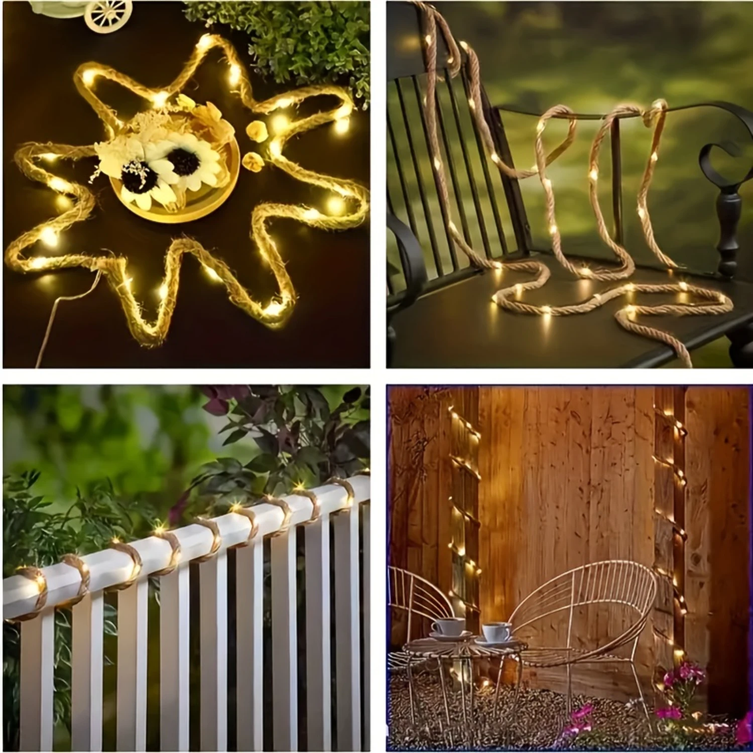 1. Solar Hemp Rope Lights: The Light equipped sophisticated monocrystalline silicon solar panel plus the inbuilt 600mAh rechargeable battery, which can be recharged without sockets and wires. When the built in NiMH battery saves enough solar energy in the daytime, the string lights can automatically work for 8 to10 hours at night.