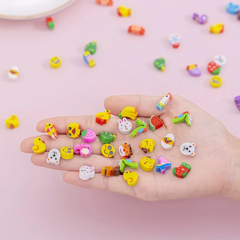 100~500pcs Mini Cartoon Eraser Bulk Multiple Styles Colored Fruit Animal Cake Design School Supply Student Festival Rewards TMZ