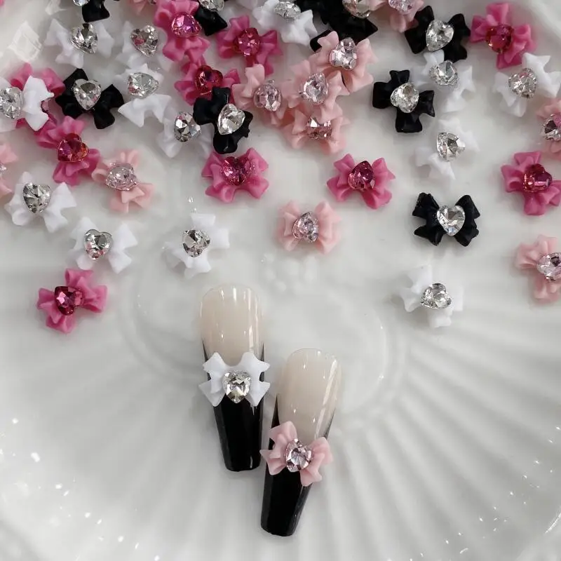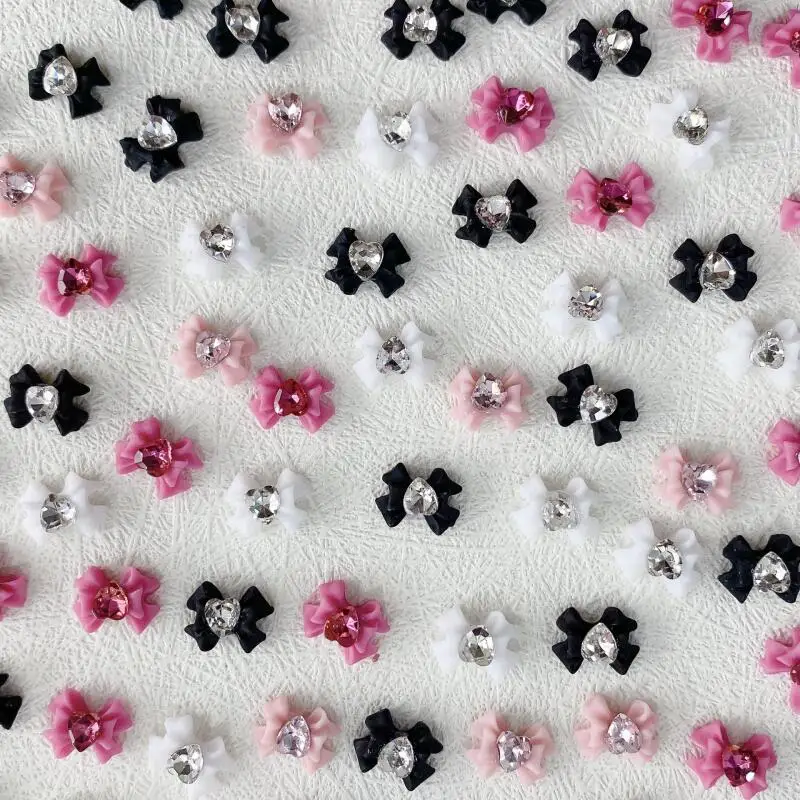 10pcs Resin Bow Nail Art Decoration With Heart Crystal Rhinestones Pearls Accessories For Nails Art Decoration Supplies