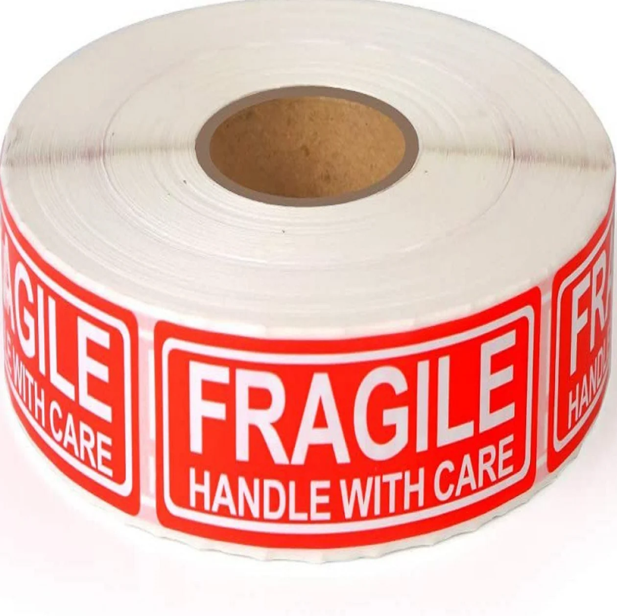 Each sticker features the phrase "Handle With Care" and "Fragile" in bold, easy-to-read lettering, along with a prominent warning sign to draw attention to the fragility of the package. These stickers are made from high-quality, durable material that can withstand the rigors of shipping and handling, ensuring your message remains intact and visible.