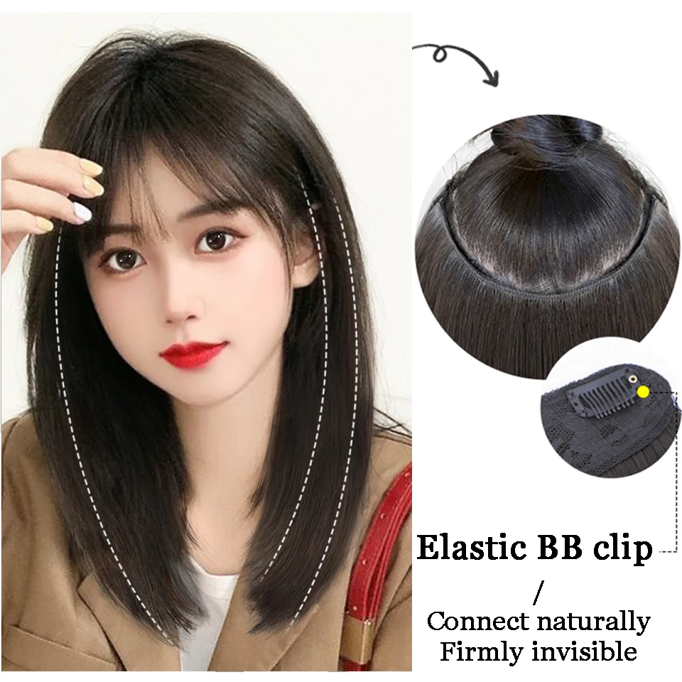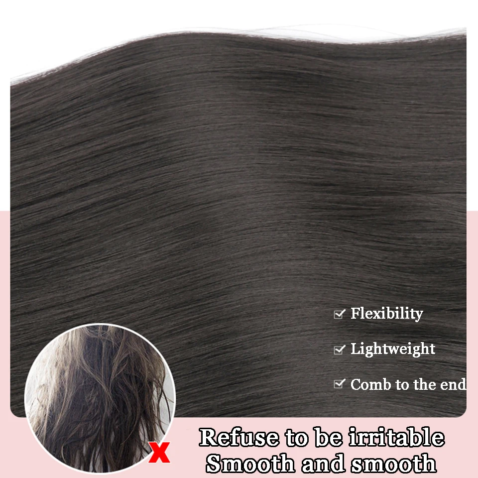 12Inch Synthetic V-shaped Layered 4 Clips Synthetic Long Straight Hair Extension Hairpiece Wig for Women
