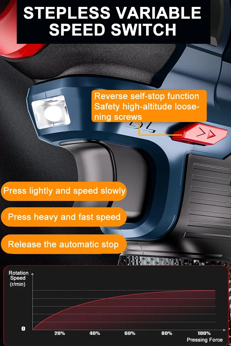 16.8V Brushless 70N.m Electric Cordless Drill 160N.m Impact Driver Screwdriver Household Multifunction Hit Power Tools