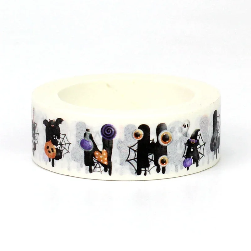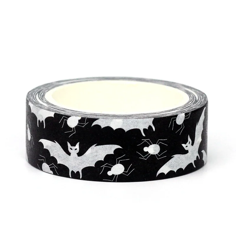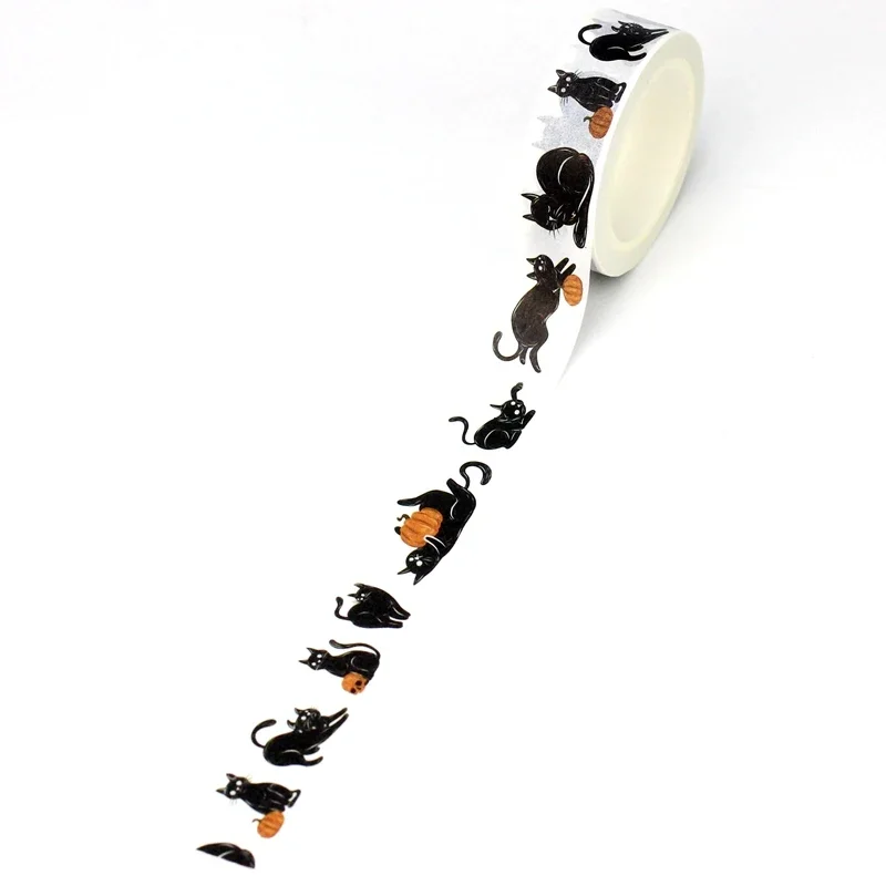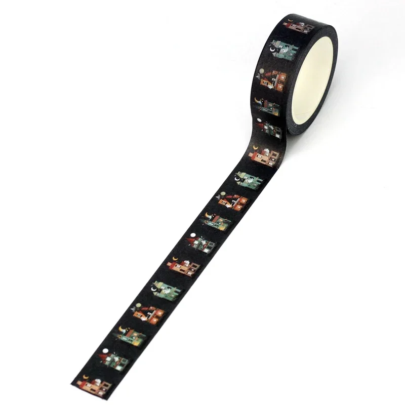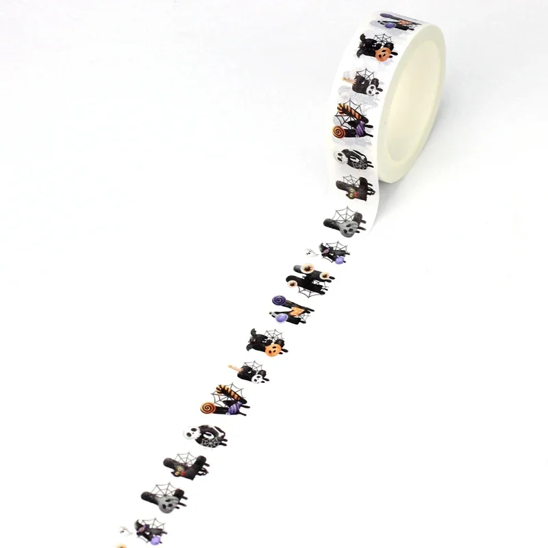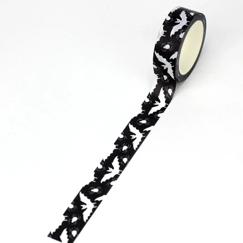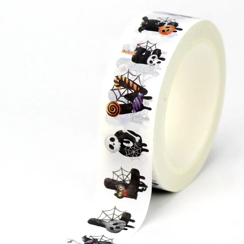 1pc 10M Deco Bat Rose Skull Black Cat Haunted House Halloween Masking Washi Tape Set for Scrapbooking Cute Journal Stationery