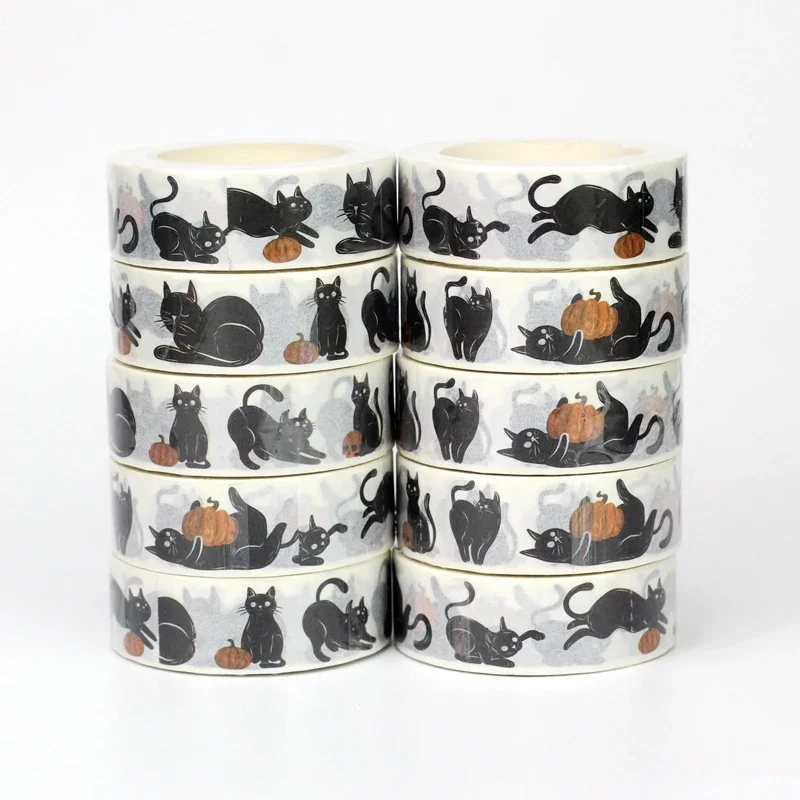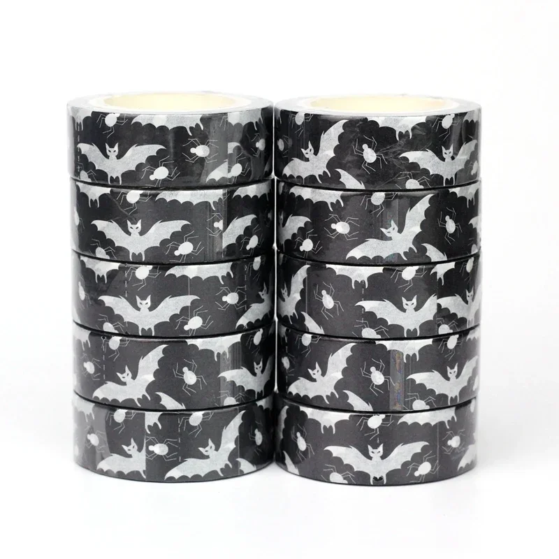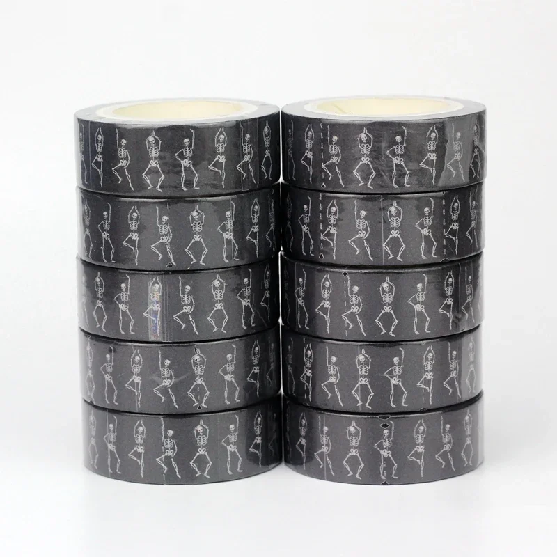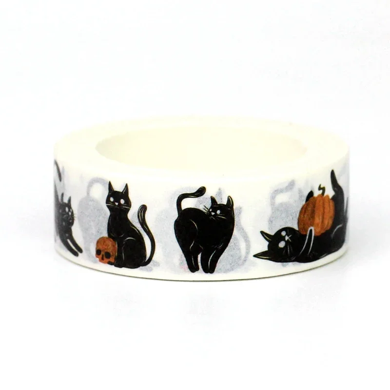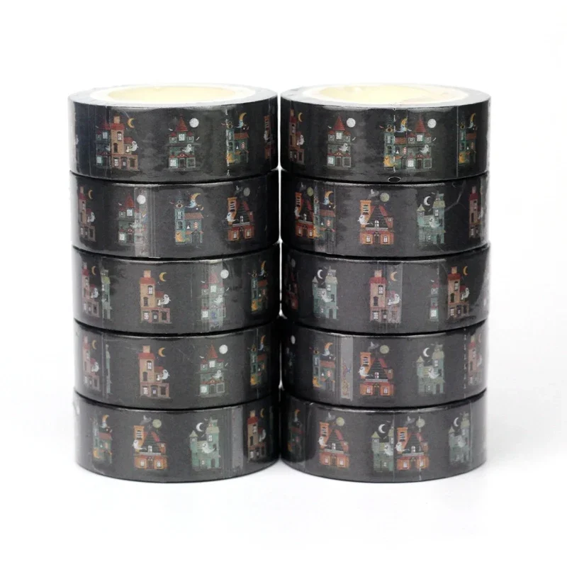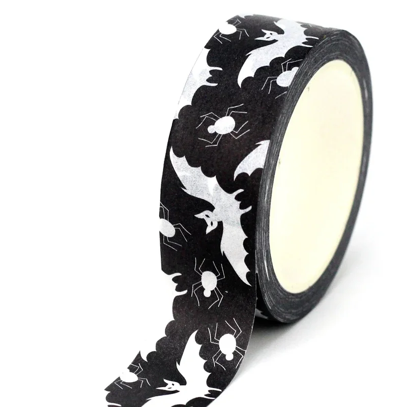 1pc 10M Deco Bat Rose Skull Black Cat Haunted House Halloween Masking Washi Tape Set for Scrapbooking Cute Journal Stationery