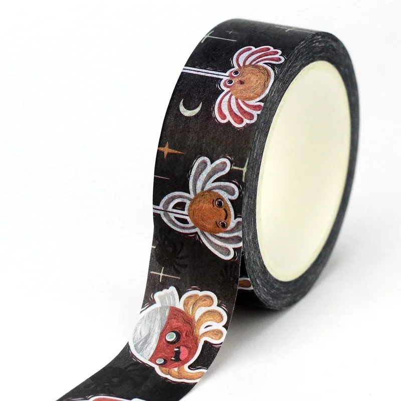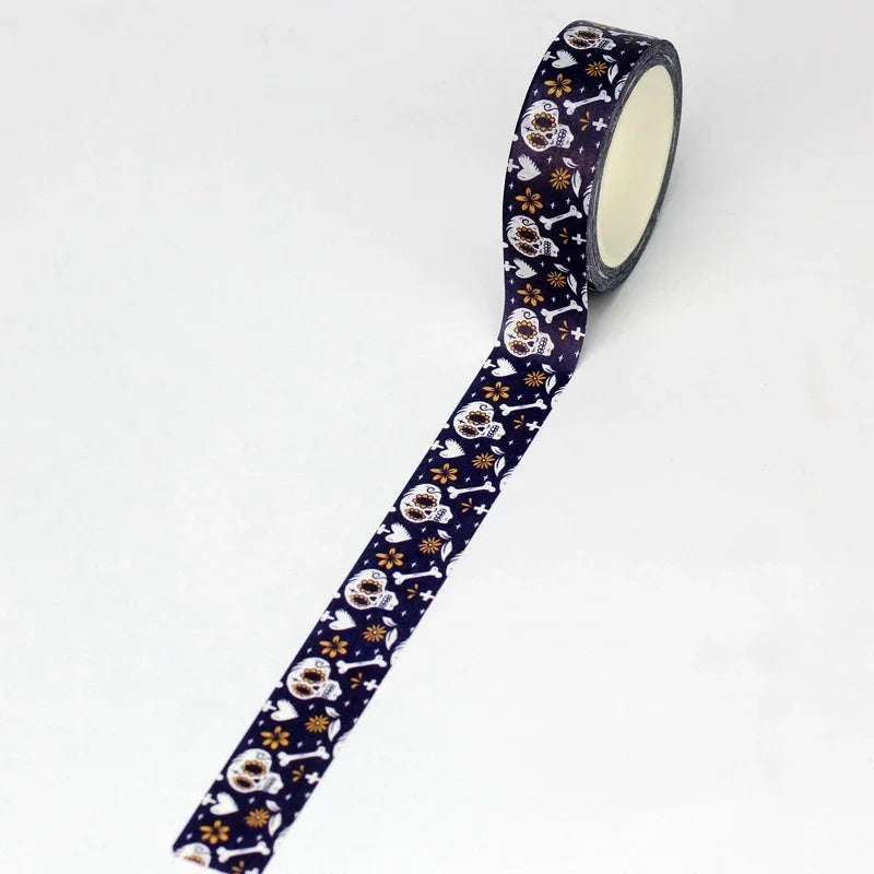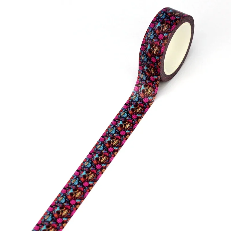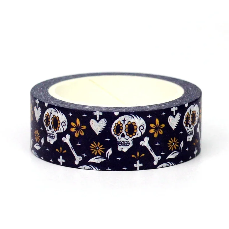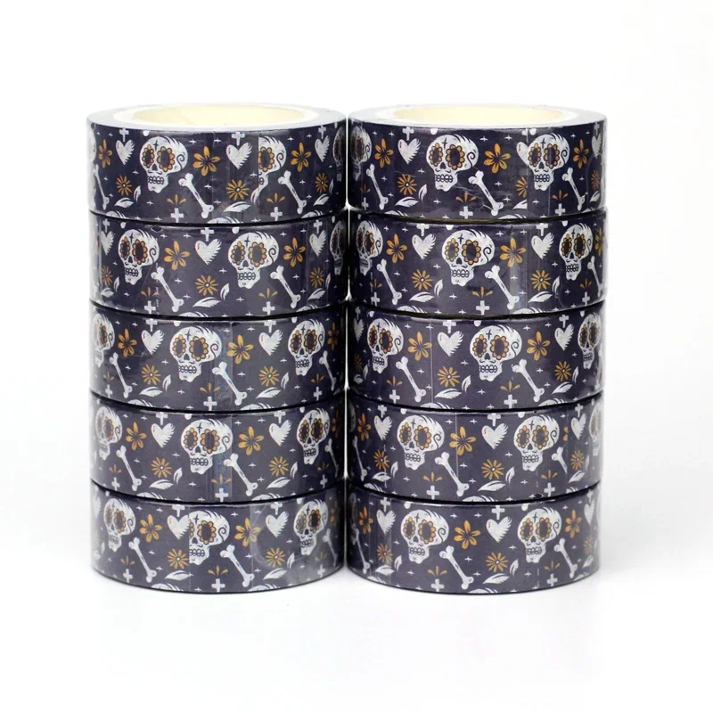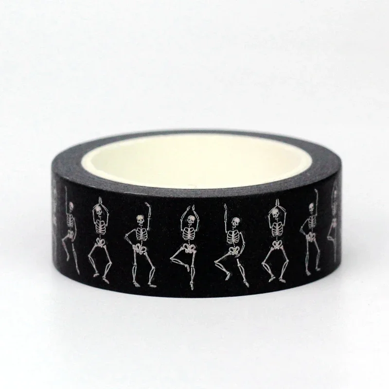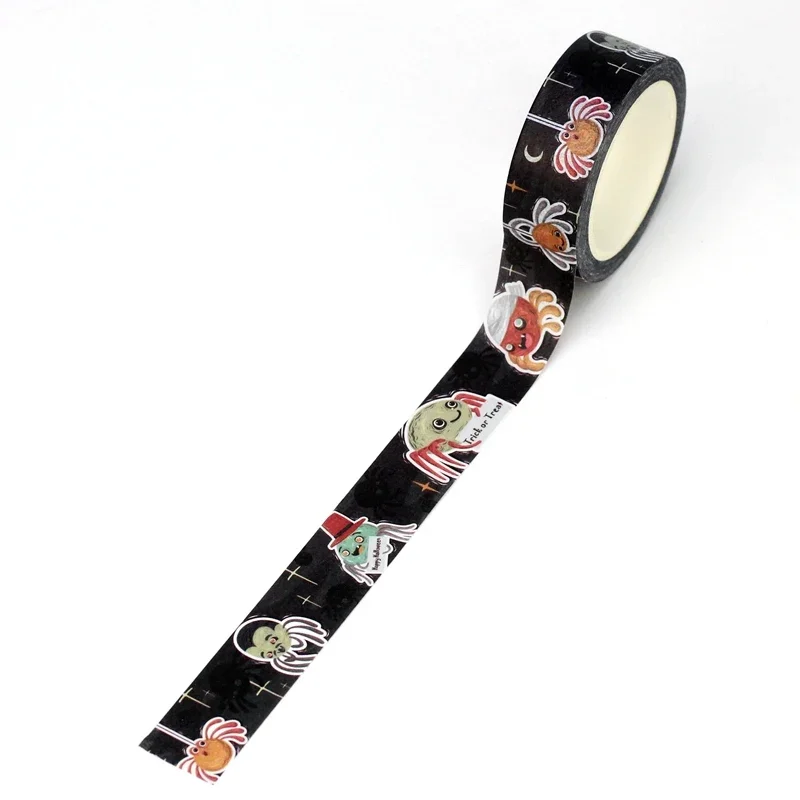 1pc 10M Deco Bat Rose Skull Black Cat Haunted House Halloween Masking Washi Tape Set for Scrapbooking Cute Journal Stationery