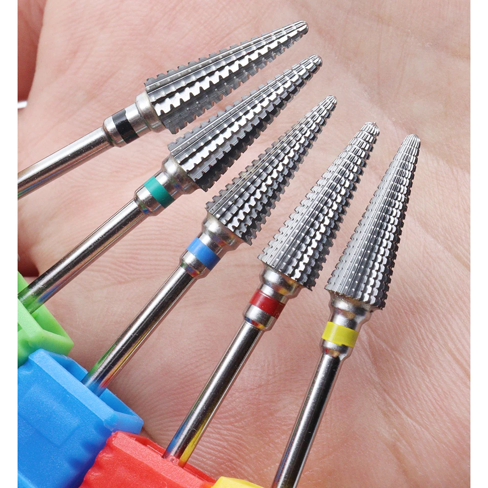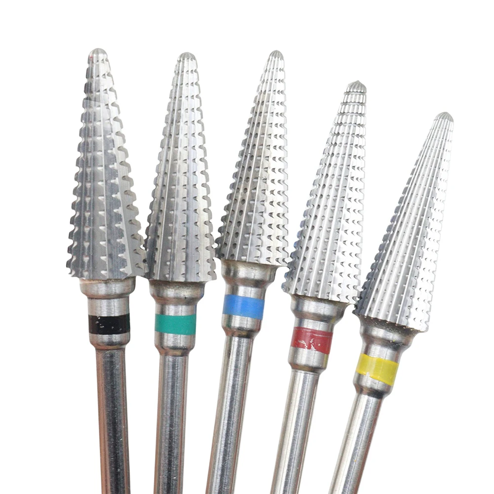 1pc 5-in-1 Carbide Professional Tungsten Steel Nail Drill Bit Gradient Teeth Design for Pre-treatment and Removal