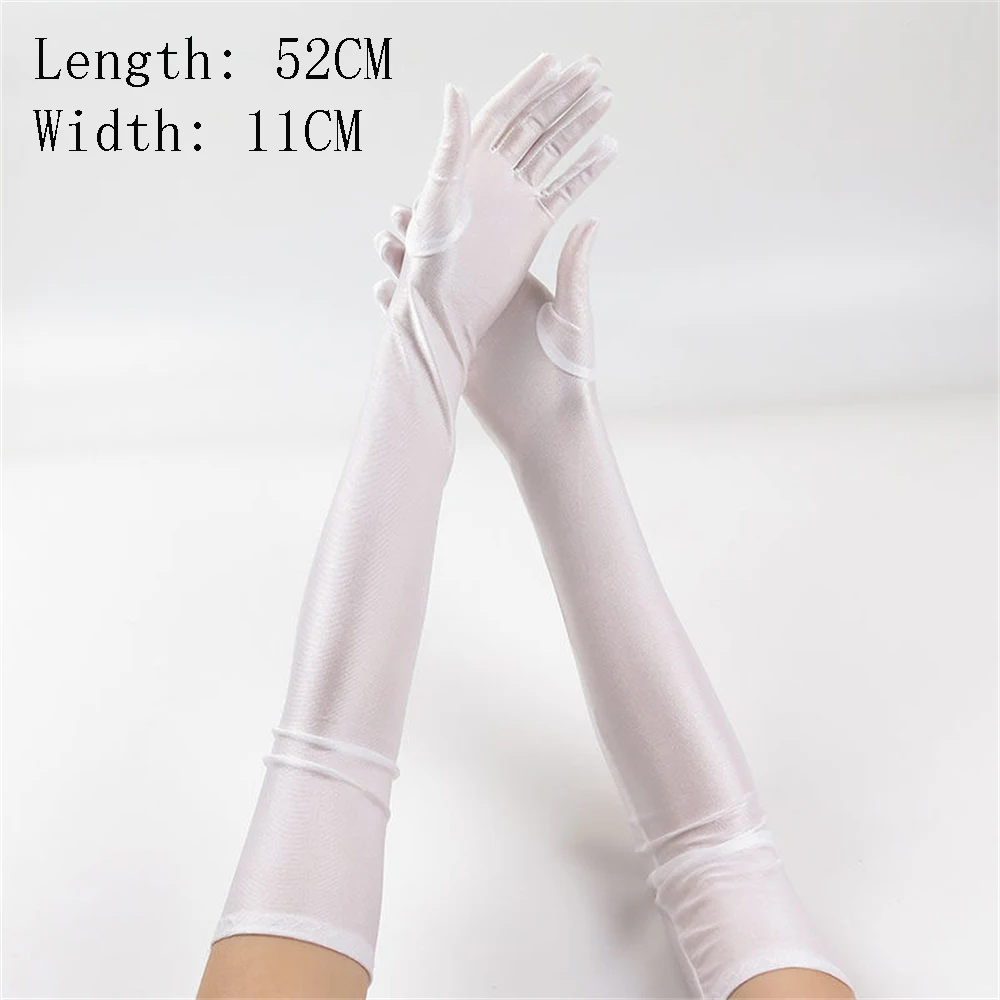 1pcs Women's White Spandex Gloves Stretch 52cm Elbow Long Sun Block Uv Protection Wedding Cosplay Costume Evening Opera Glove Bl