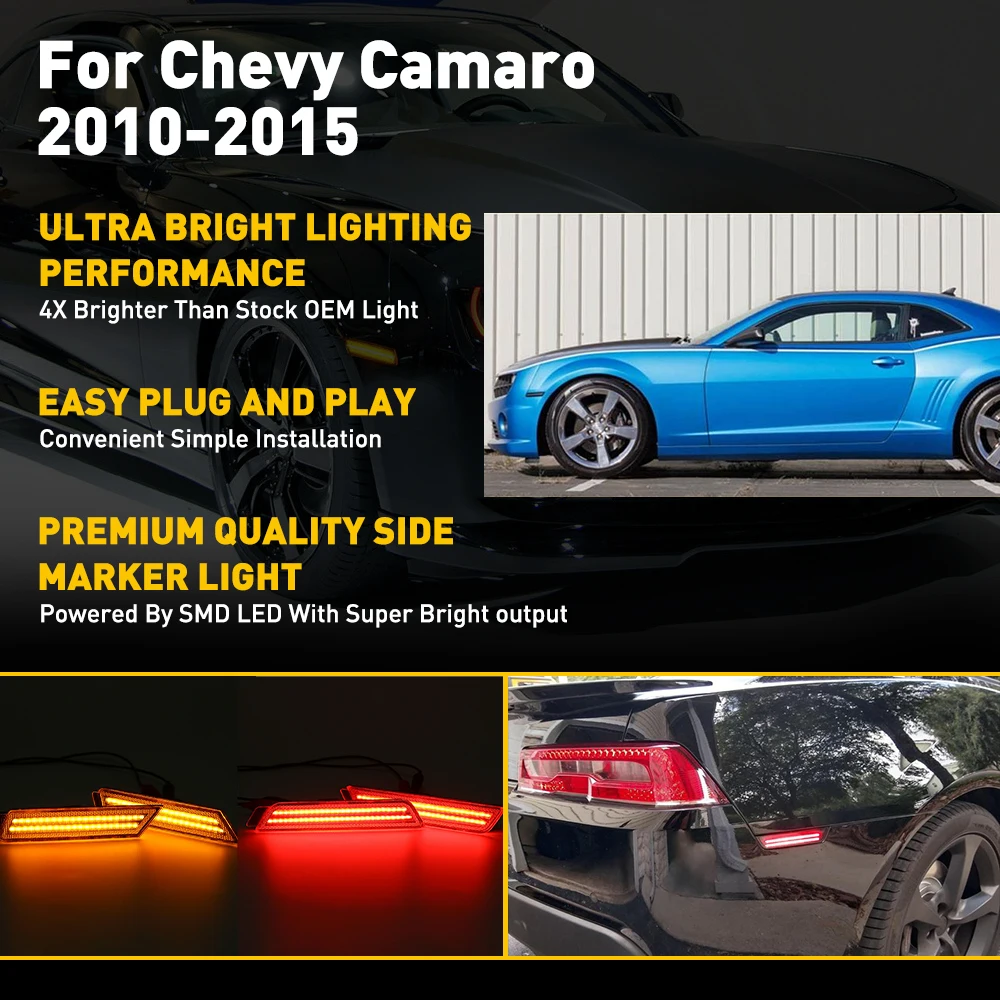 2/4Pcs LED Bumper Side Smoked Marker Light for Chevy Camaro 2010 2011 2012 2013 2014 2015 Yellow Red Front Rear LED Fender Lamps