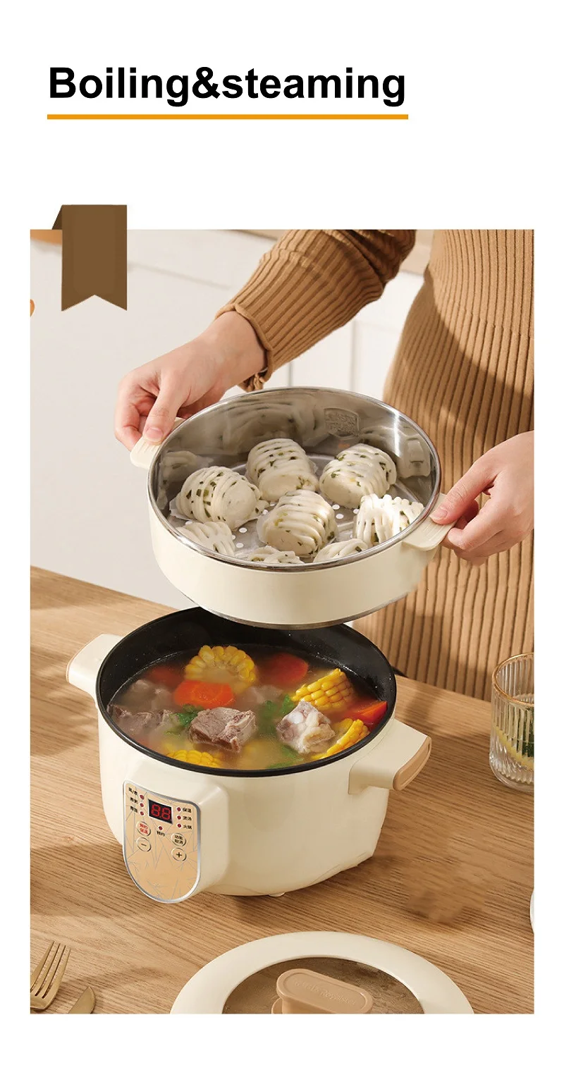 2.5L Home Multifunctional Electric Saute Pot Smart Non-stick With Steamer Rice Cooker Large Capacity Electric Hot Pot 220V