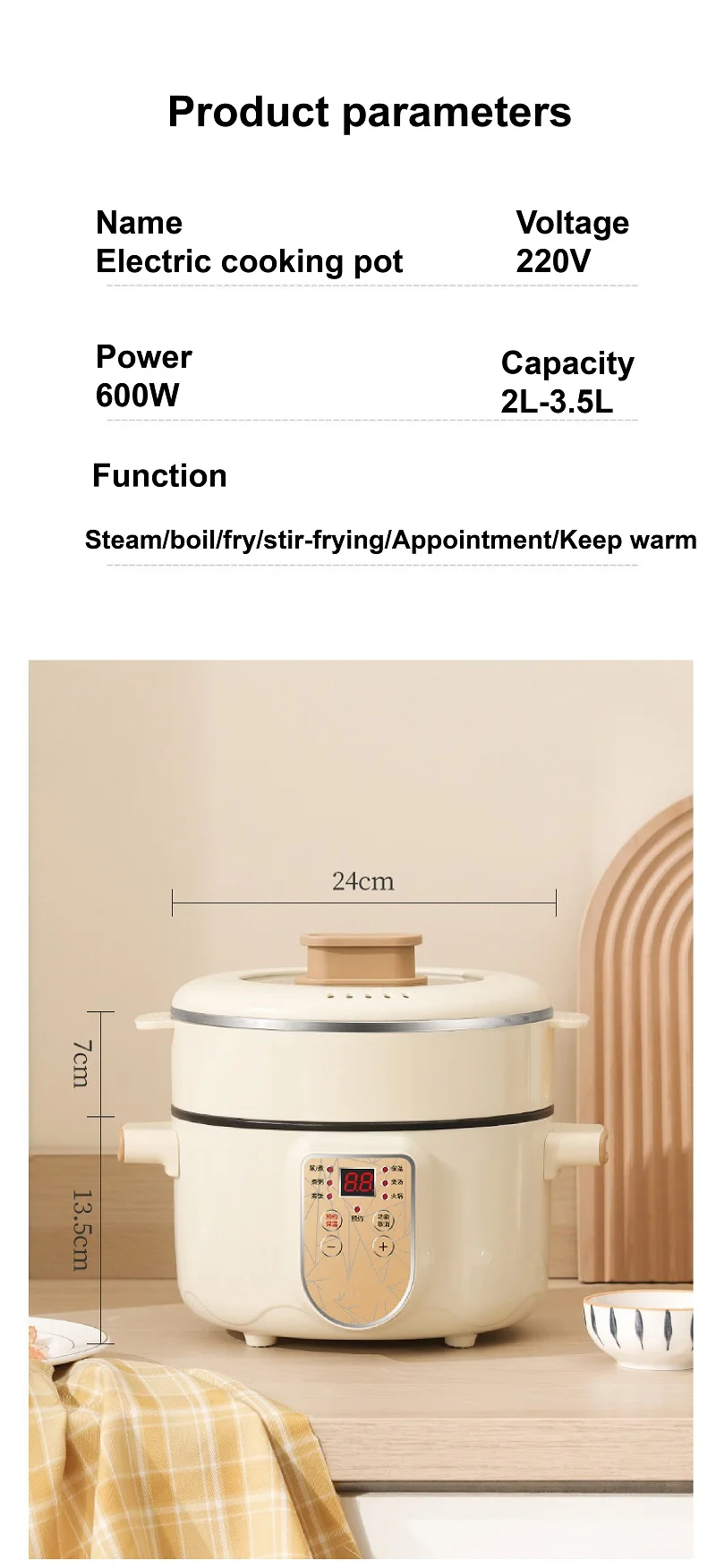 2L/3L Home Multifunctional Electric Saute Pot Smart Non-stick With Steamer Rice Cooker Large Capacity Electric Hot Pot 220V