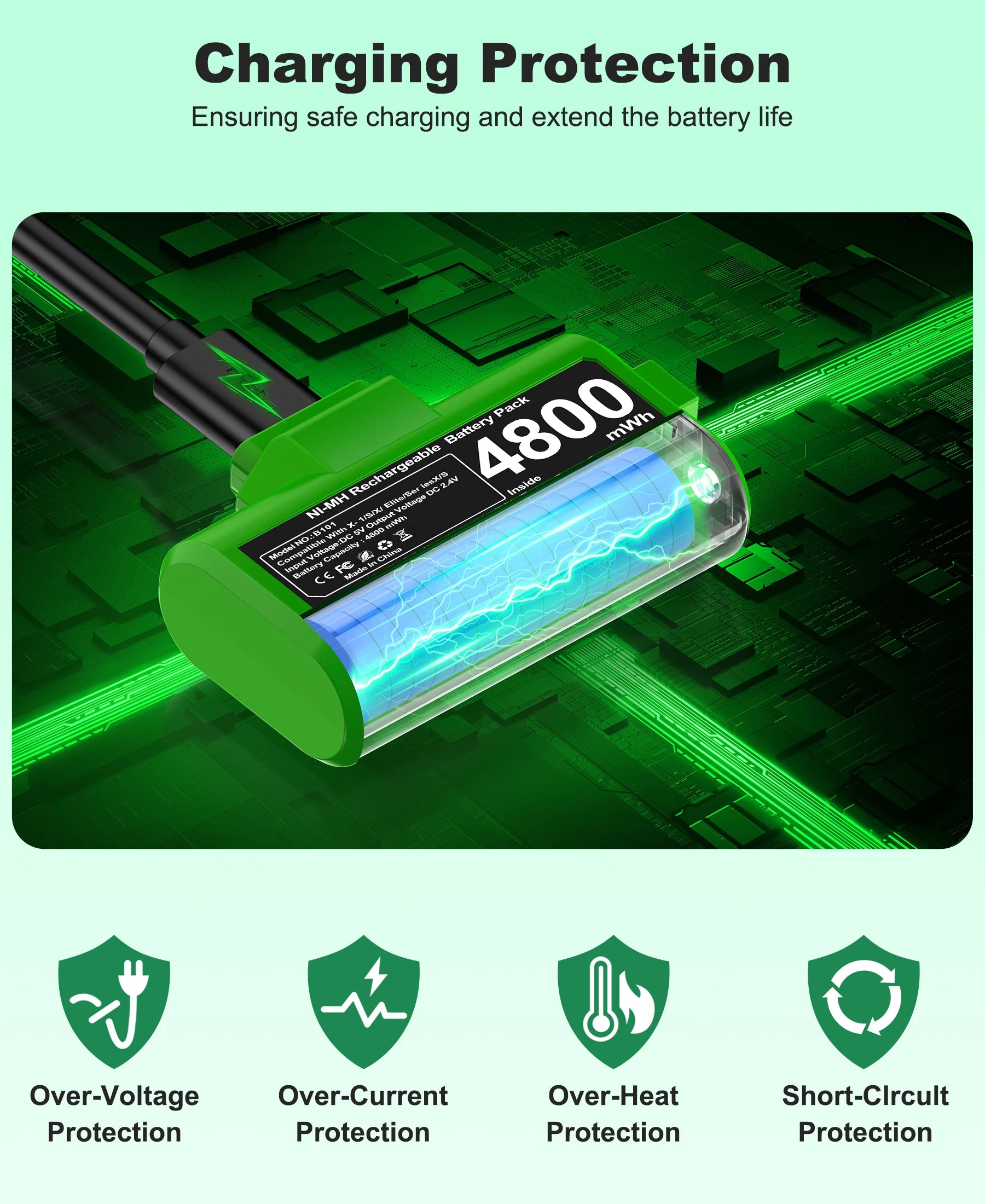 2 x 4800mWh Xbox One Controller Batteries Pack Play and Charge Kit USB-C Charging Cable/4 Covers for Xbox One/Series X|S