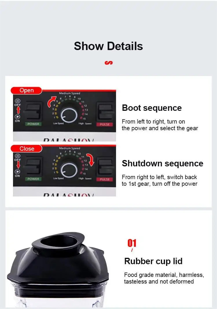 2000W Heavy Duty Commercial Blender Stationary Mixer Food Processor Ice Smoothies for Kitchen High Power Juicer Blender BPA Free