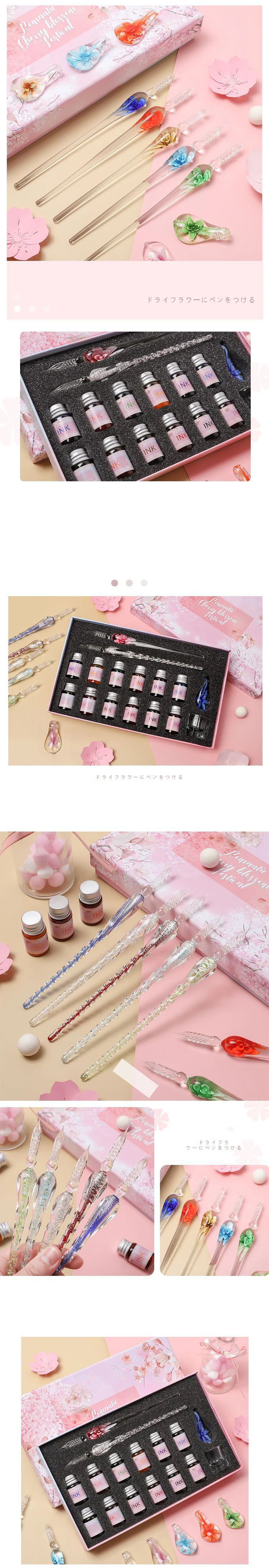 2022 Sakura Glass Dip Pen Set 2Pcs Crystal Glass Pens with 12 Gold Powder Inks for Signatures Drawing Caligraphy Kit Gifts