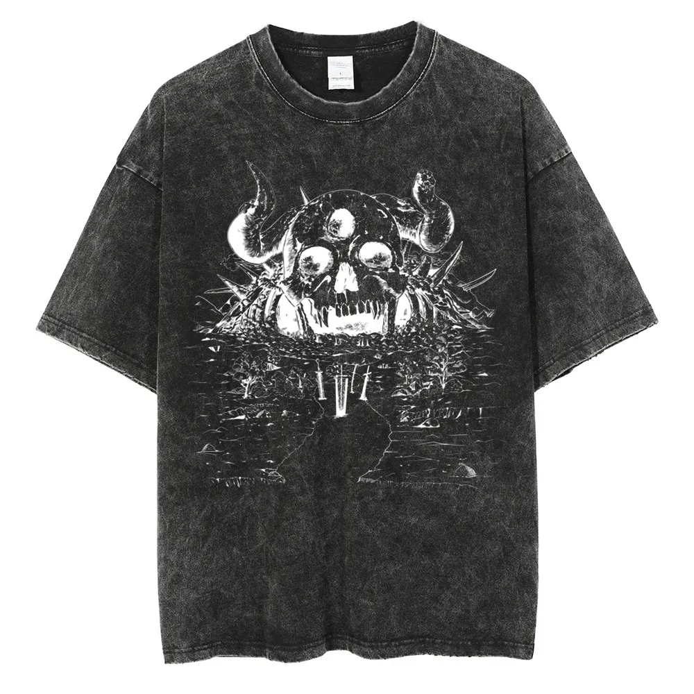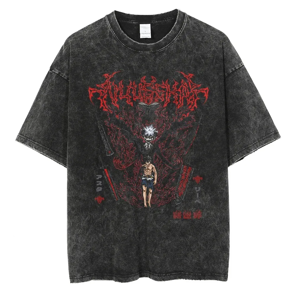 2024 Cotton Short Sleeve Tshirt Tops Hip Hop Men Women Streetwear Washed Black Harajuku T Shirt Japanese Anime Graphic T-Shirt