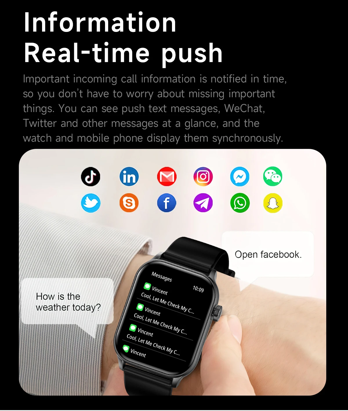 function: Alarm Clock,Remote Control,Countdown,Sleep Tracker,Speed Measurement,Fitness Tracker,Passometer,Call Reminder,Answer Call,Push Message,Message Reminder,Dial Call,Heart Rate Tracker