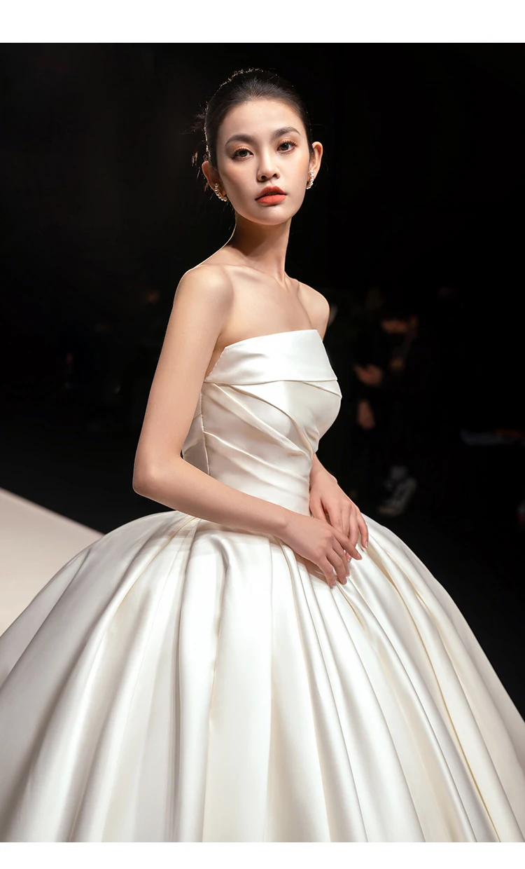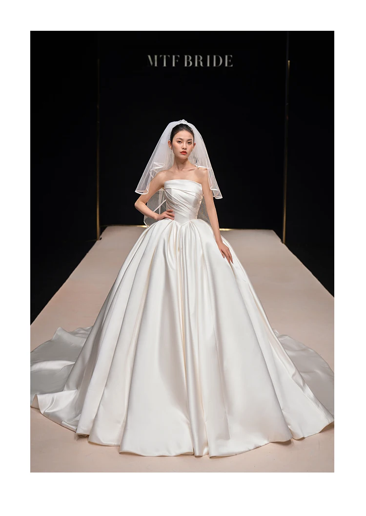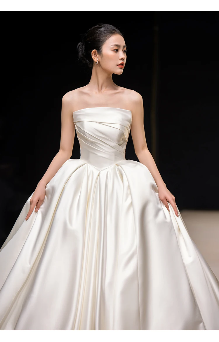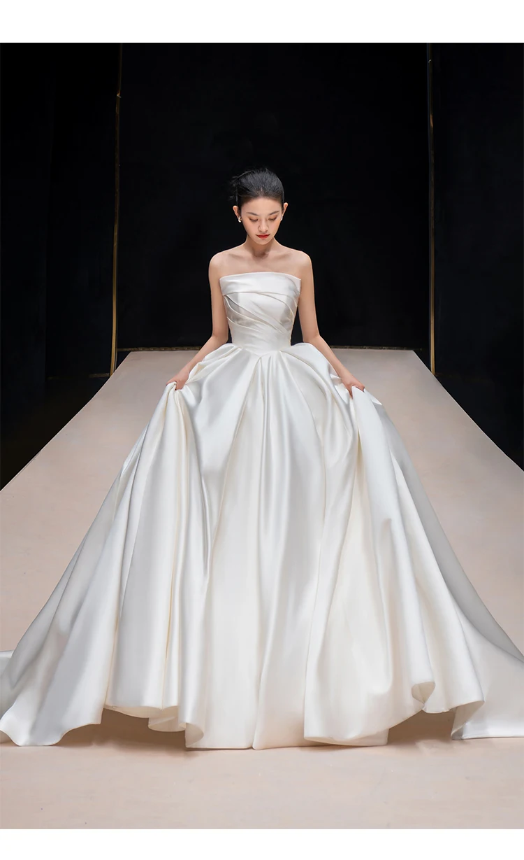 2025 Elegant Sleeveless Satin Ball Gown Wedding Dress Long Train Bridal Wedding Dress