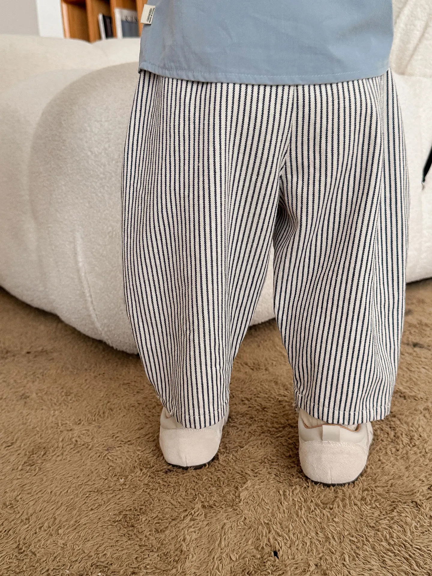 Available in multiple styles (striped, denim blue, beige) – gender-neutral appeal works for both boys and girls.