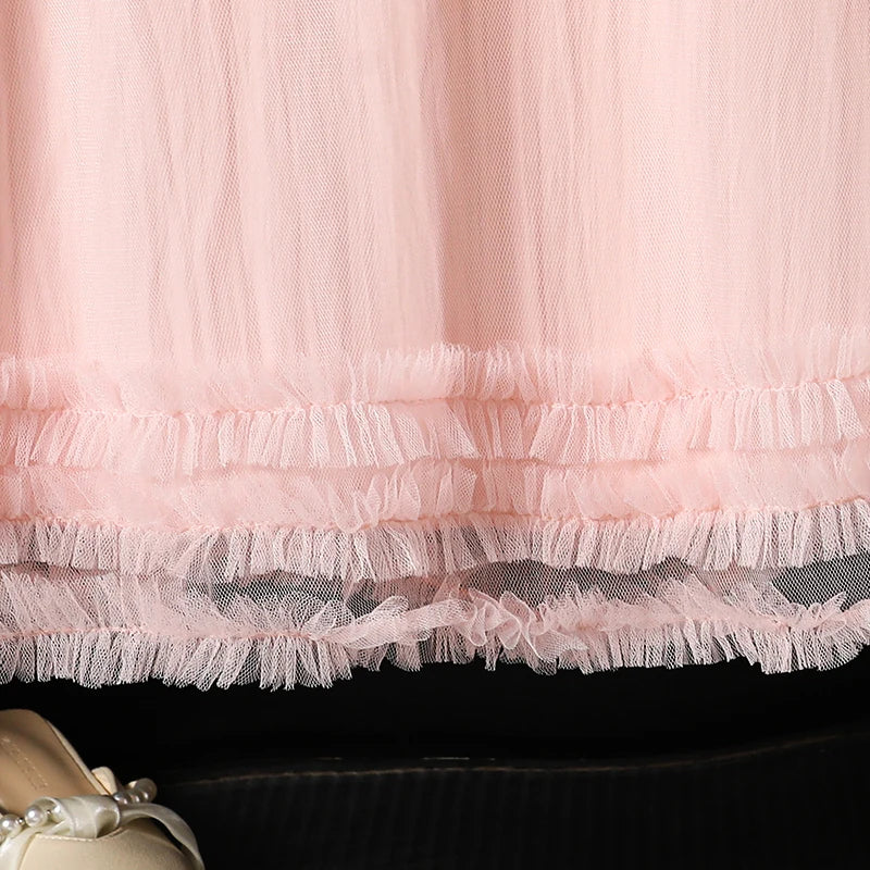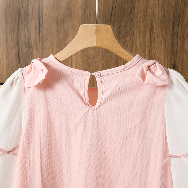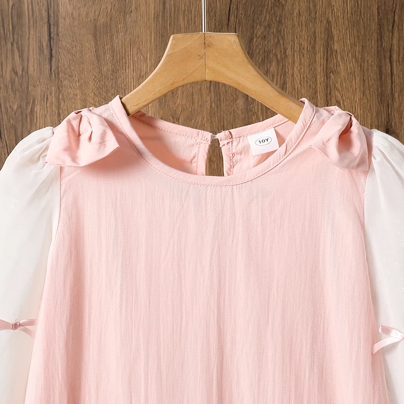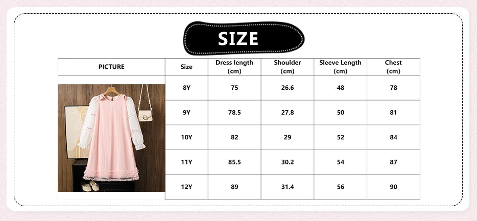 2025 Kids Clothing Autumn New Dress Pink O-Neck Long Sleeve A-Line Dress For Girls 8-12 Years Pretty Princess dress Party Set