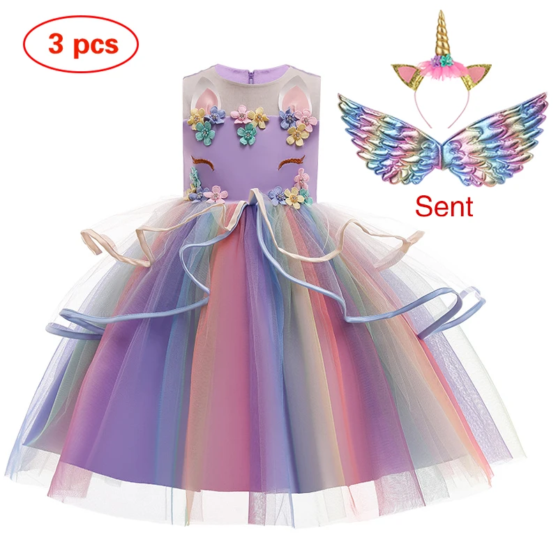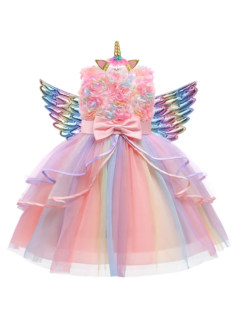 2025 new Girl's Unicorn Dress 1-10 Year Old Children's Flower Cake Princess Dress Carnival Halloween Performance Clothing
