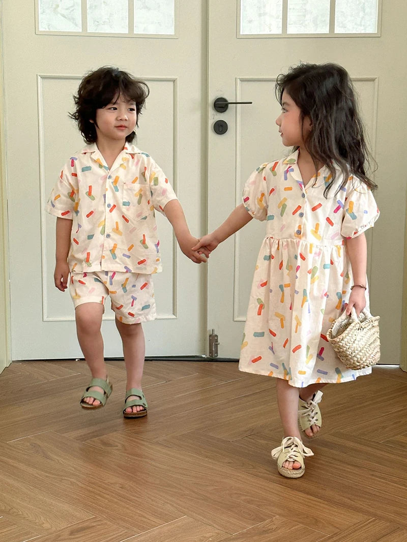 2025 New Vacation Style Cotton Kids' Summer Clothing Set Girls Sundress for 80 - 150cm Boys and Girls Sibling Outfits