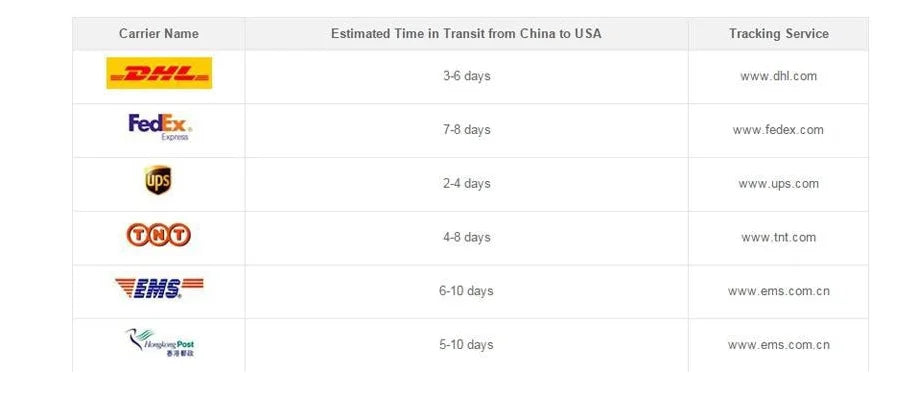 2). All items that the order must be shipped only after payment is received by the third Party we ship the item for customers through Chinapostair, EMS, UPS, DHL, Fedex or Air Mail, according to the actual situation.