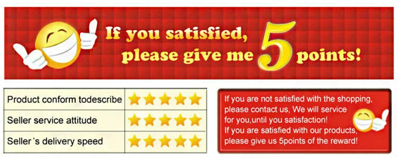1) Since your feedback is very important to our business development, we sincerely invite you to leave positive feedback for us if you are satisfied with our product and service.