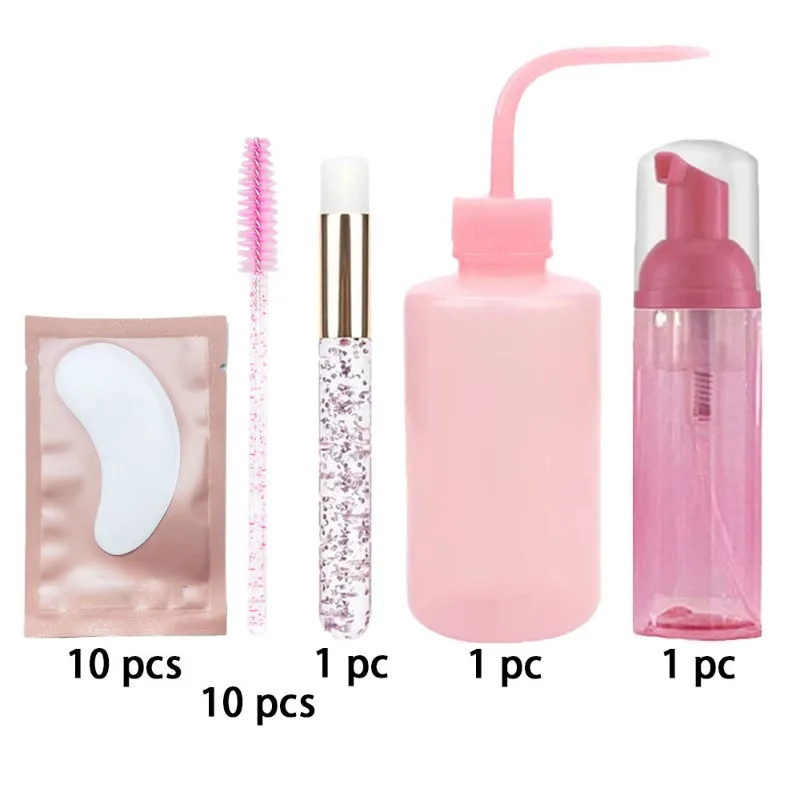 23Pcs Eyelash Extension Cleaning Kit 5 in 1 Lash Shampoo Brush Soap Foam Washing Bottle Set Eyebrow Mascara Wand Eye Pad Patches