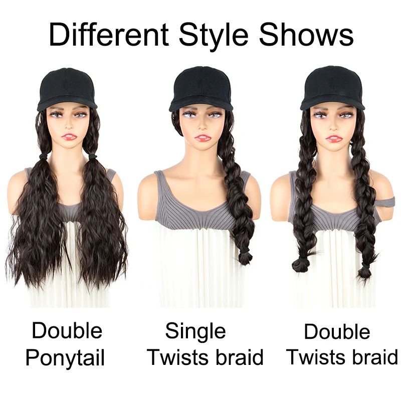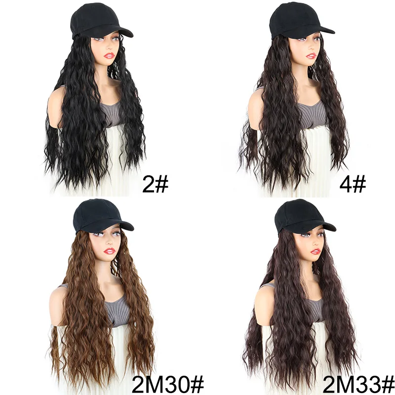 24Inch Synthetic Long Kinky Curly Hair Extension Wigs Baseball Cap Hat Adjustable One-piece Wigs for Women