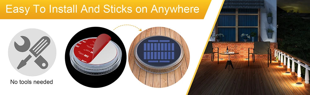 Solar In-Ground Lights can easy be installed in any outdoor flat surface places with included waterproof adhesive tapes, no need any extra screws and tools.