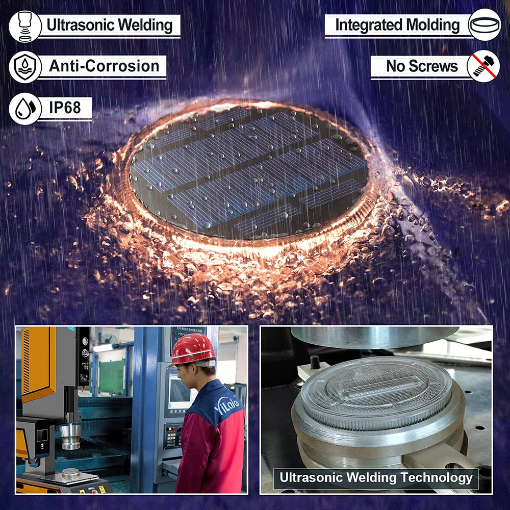 The solar step lights made with high level quality sturdy PC, resistance to pressure up to 10 tons. IP68 waterproof is durable under all kinds of terrible weather conditions.