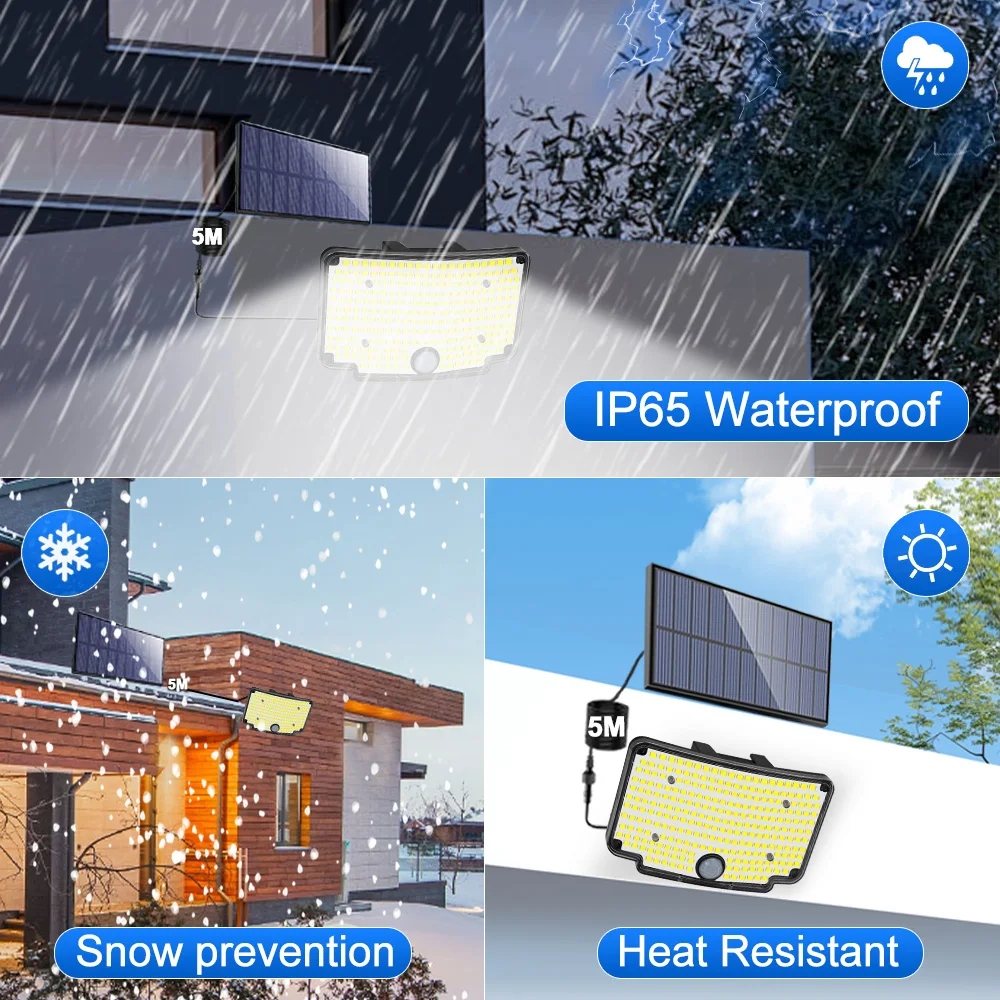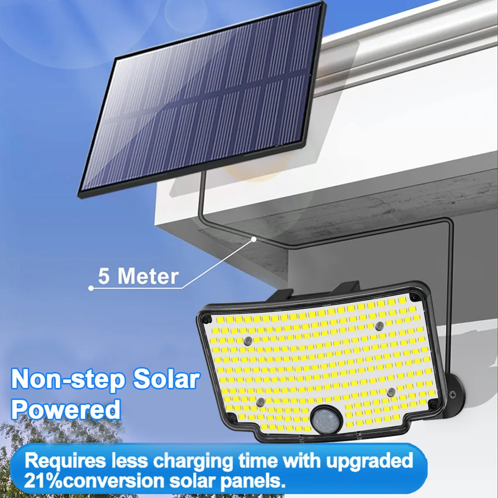【Split Design & 5M Extended Cable:Featuring a convenient split design, the solar panel and light can be installed separately for optimal sunlight absorption and lighting placement. The 5M waterproof cable allows flexible installation, ensuring the panel gets maximum sun exposure while the light illuminates shaded areas.
