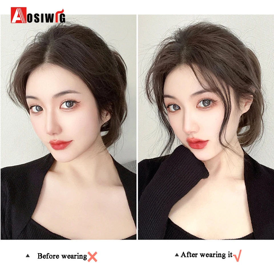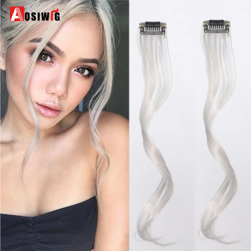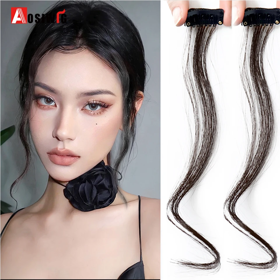 2PC Synthesis Bangs Wig Hair Extensions Curly Clip-on Hair Front Side Long Wavy Blone Bangs With Clip Invisible Fringe Fake Hai