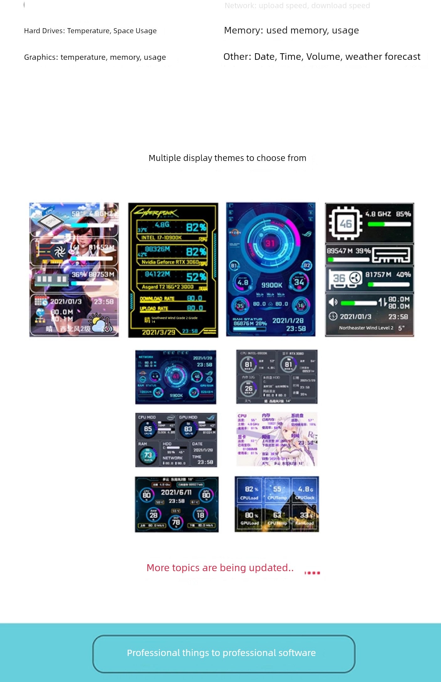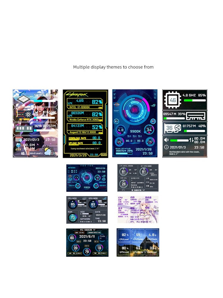 3.5-Inch Computer Sub-Screen IPs Full View USB-C Chassis Sub-Screen Computer Status Monitoring Installation-Free Aida64