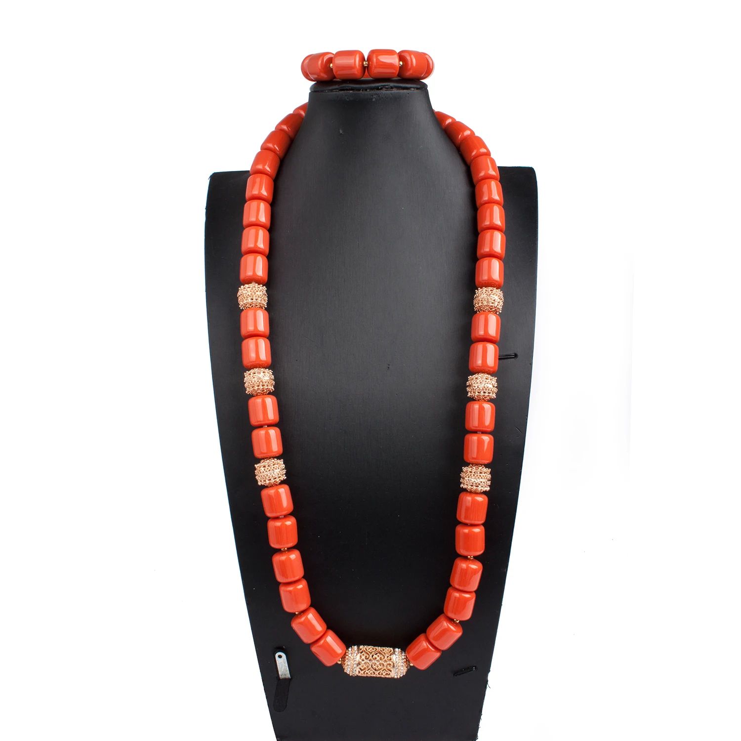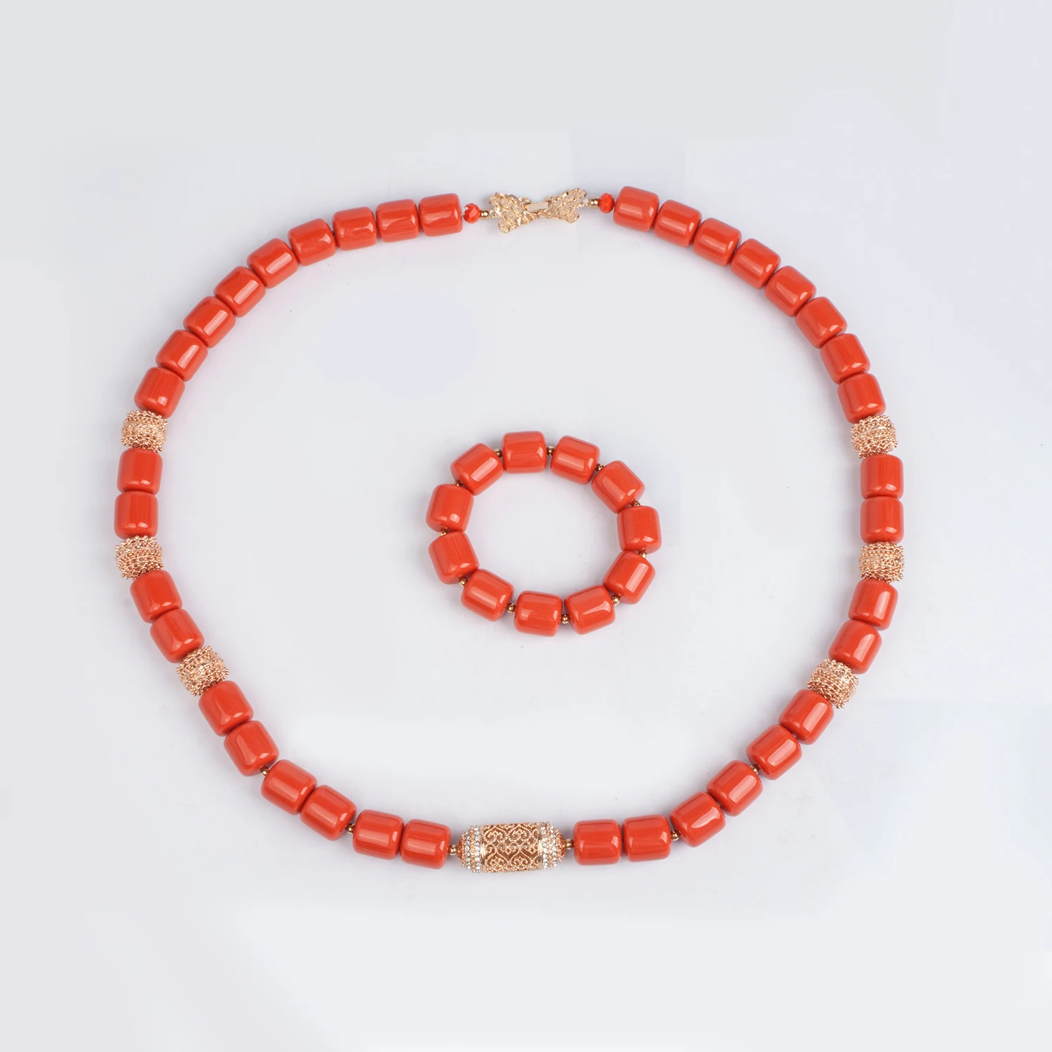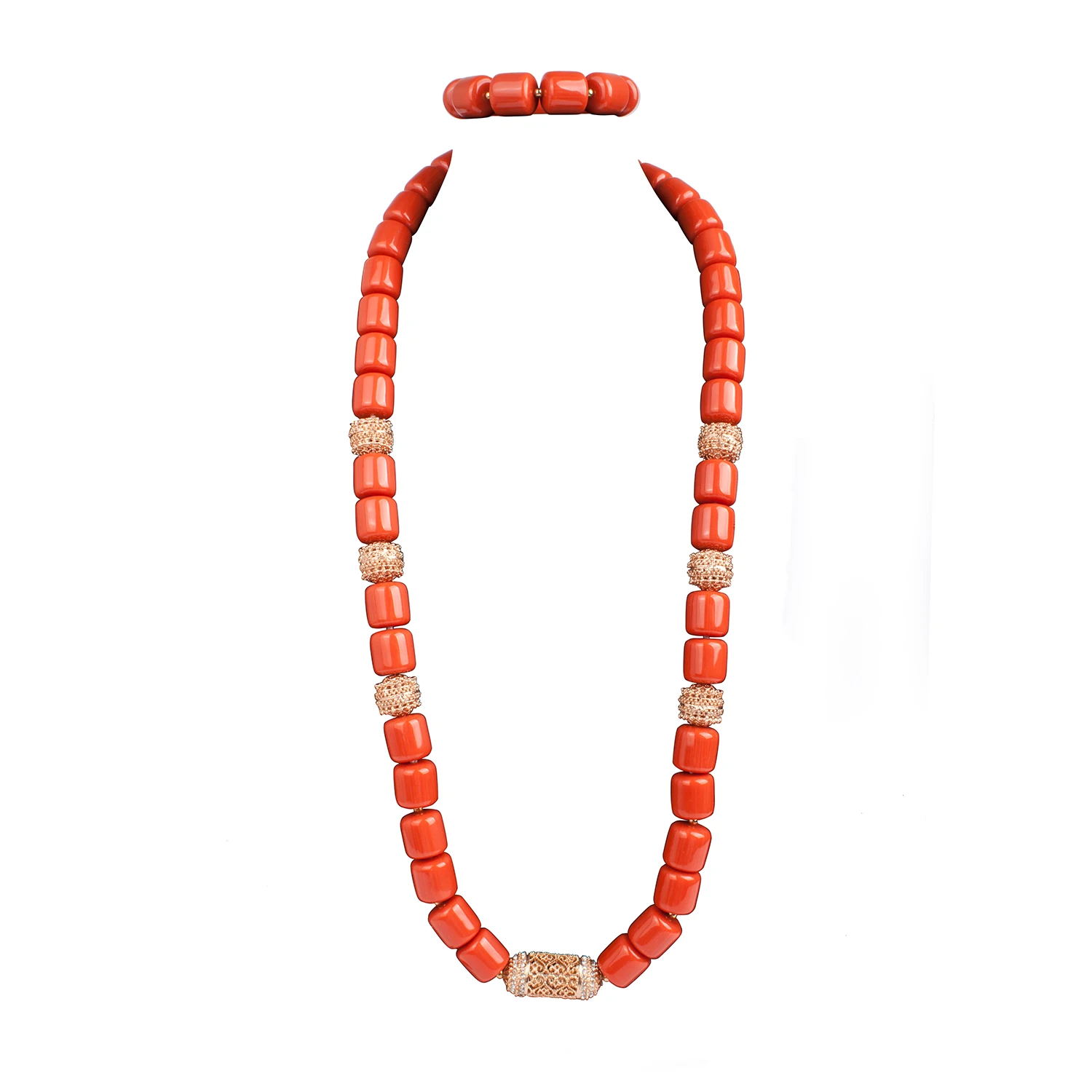 32 inches Long Orange Beads African Jewelry Set Women Bridal Party Costume Necklace Jewelry Set