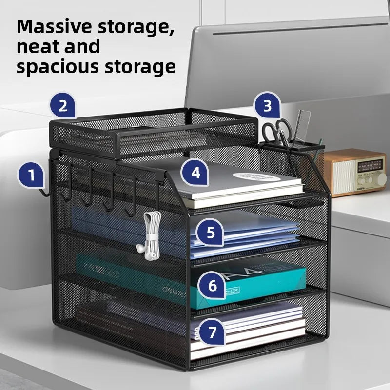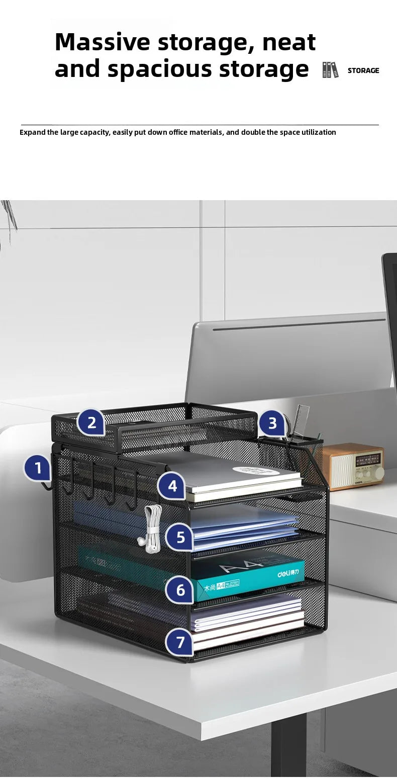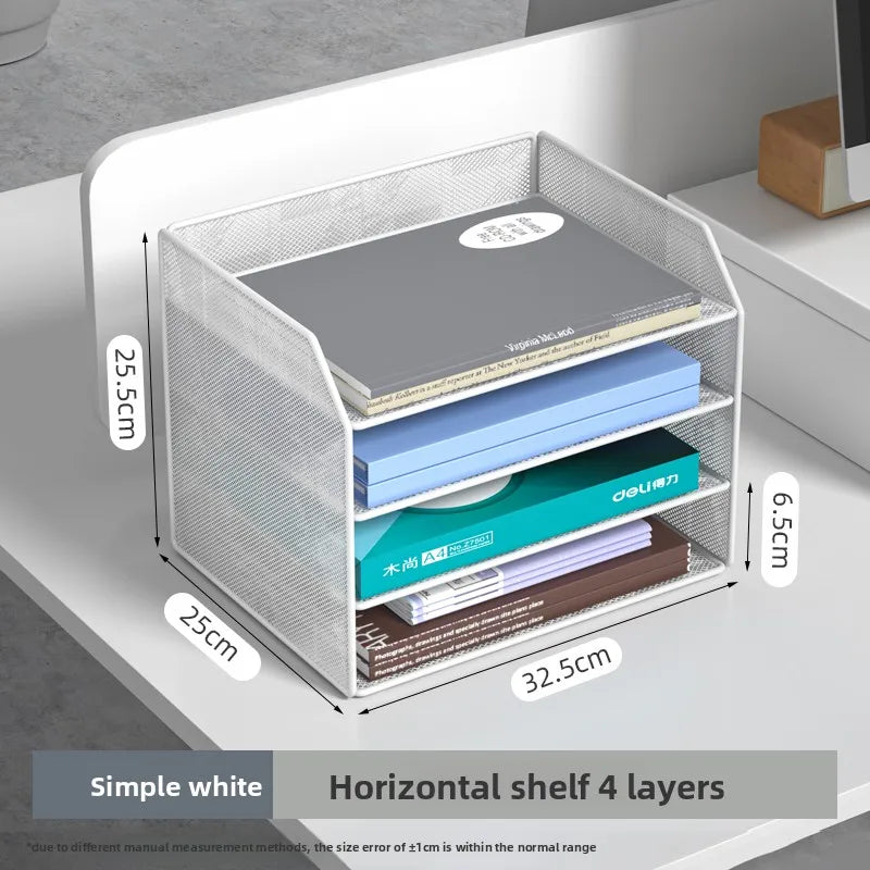 4 Trays Paper Organizer Letter Tray with Handle-Mesh Desk File Organizer, Paper Sorter Desk Organizer for Office, Home or School