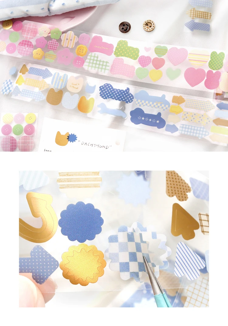 40mm * 300cm Kawaii Ins Basic Geometric Pattern Die Cutting Stickers Creative Handbook Decoration DIY Diary Scrapbook Supplies