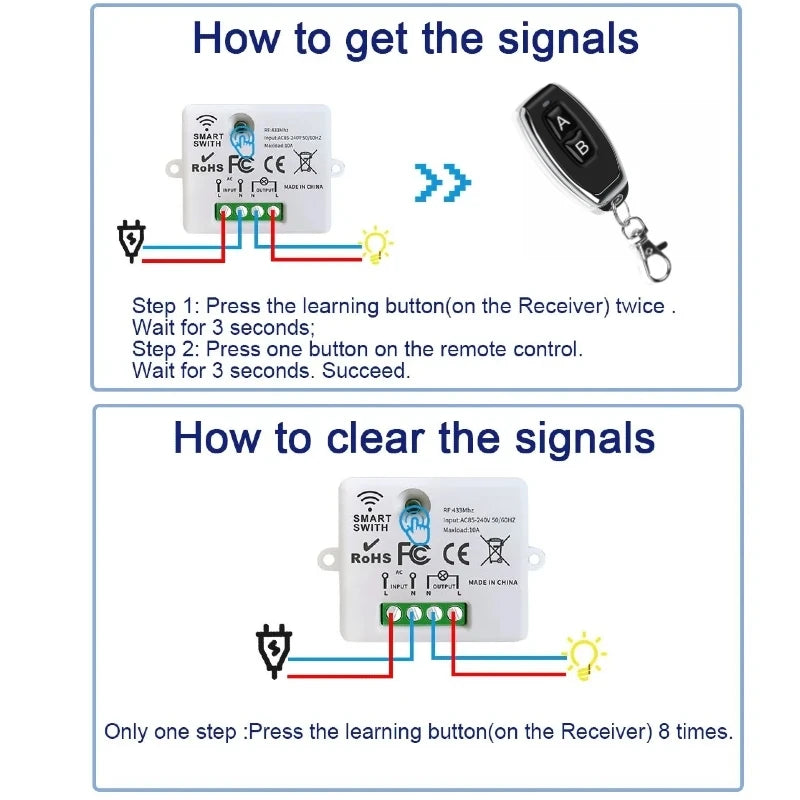 Control the light in the room, even outside the room, The receiver can be remotely controlled up to 100 meters through a wireless switch and the signal can be controlled through the wall