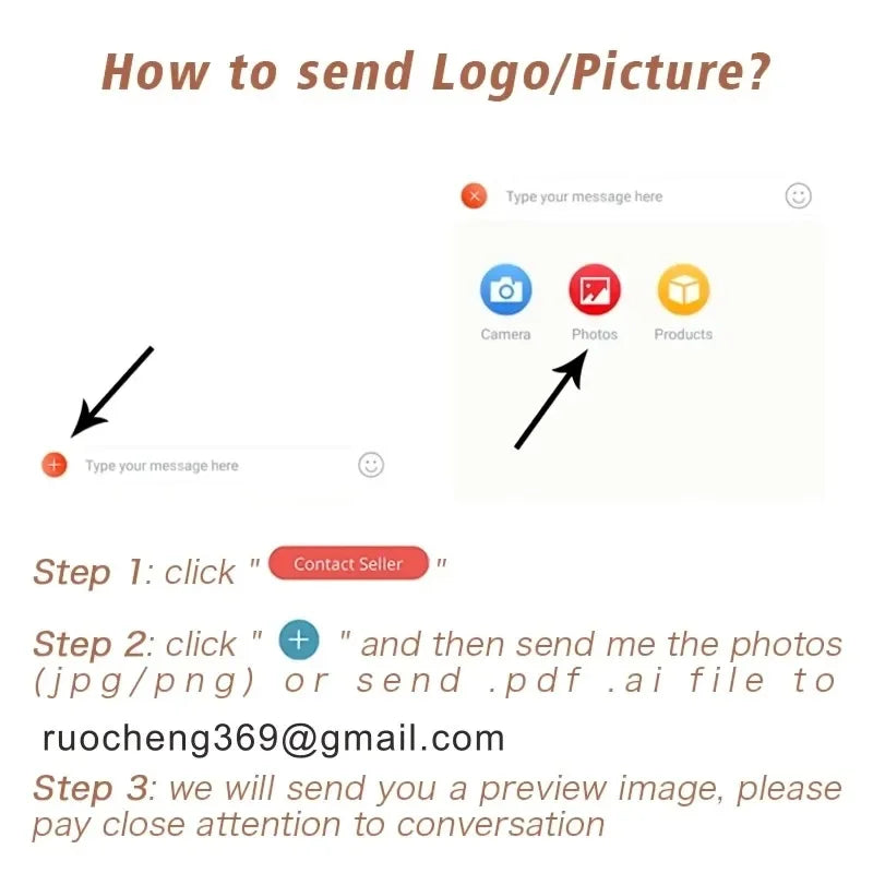 2. Please send us the logo you want to print on the sticker by aliexpress message, or send it to our email address: ruocheng369@gmail.com