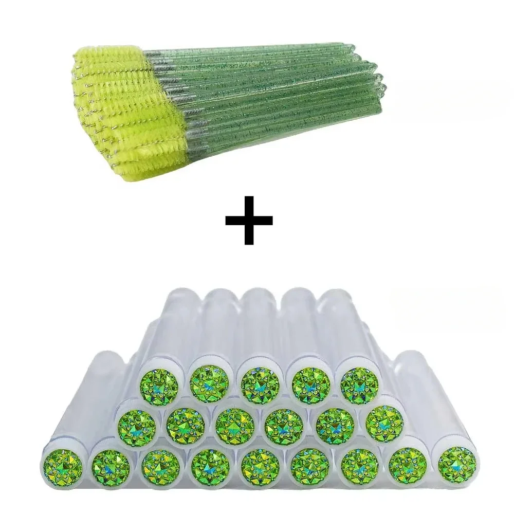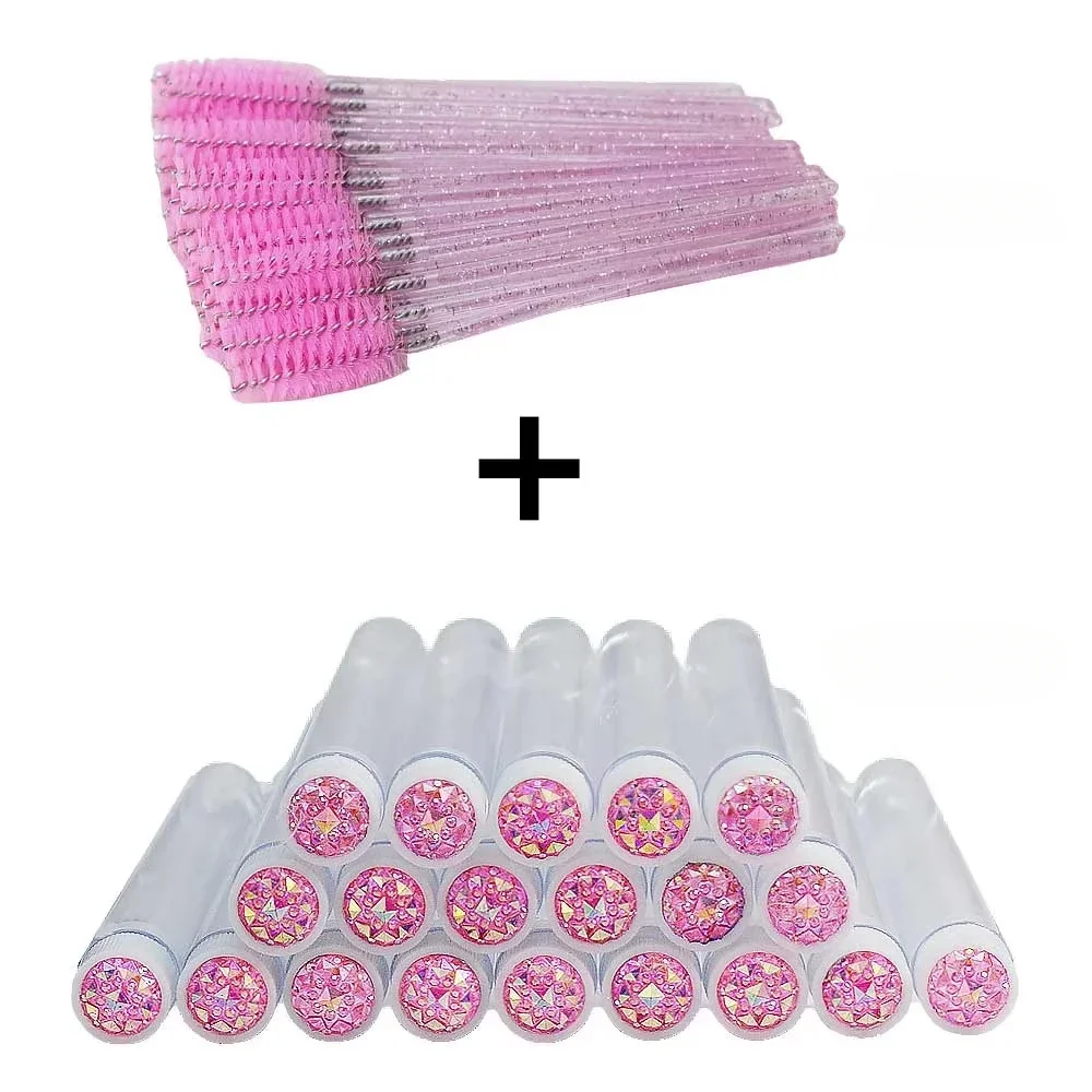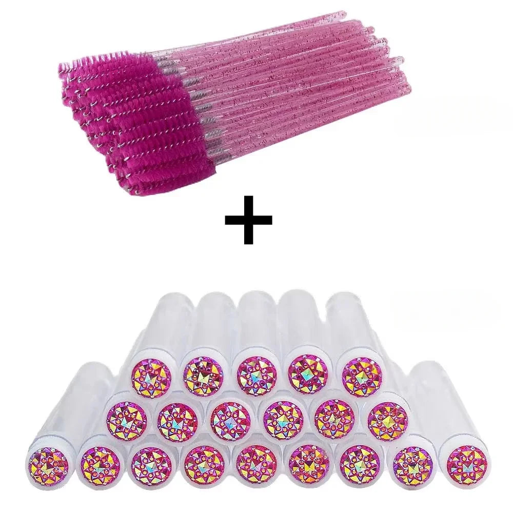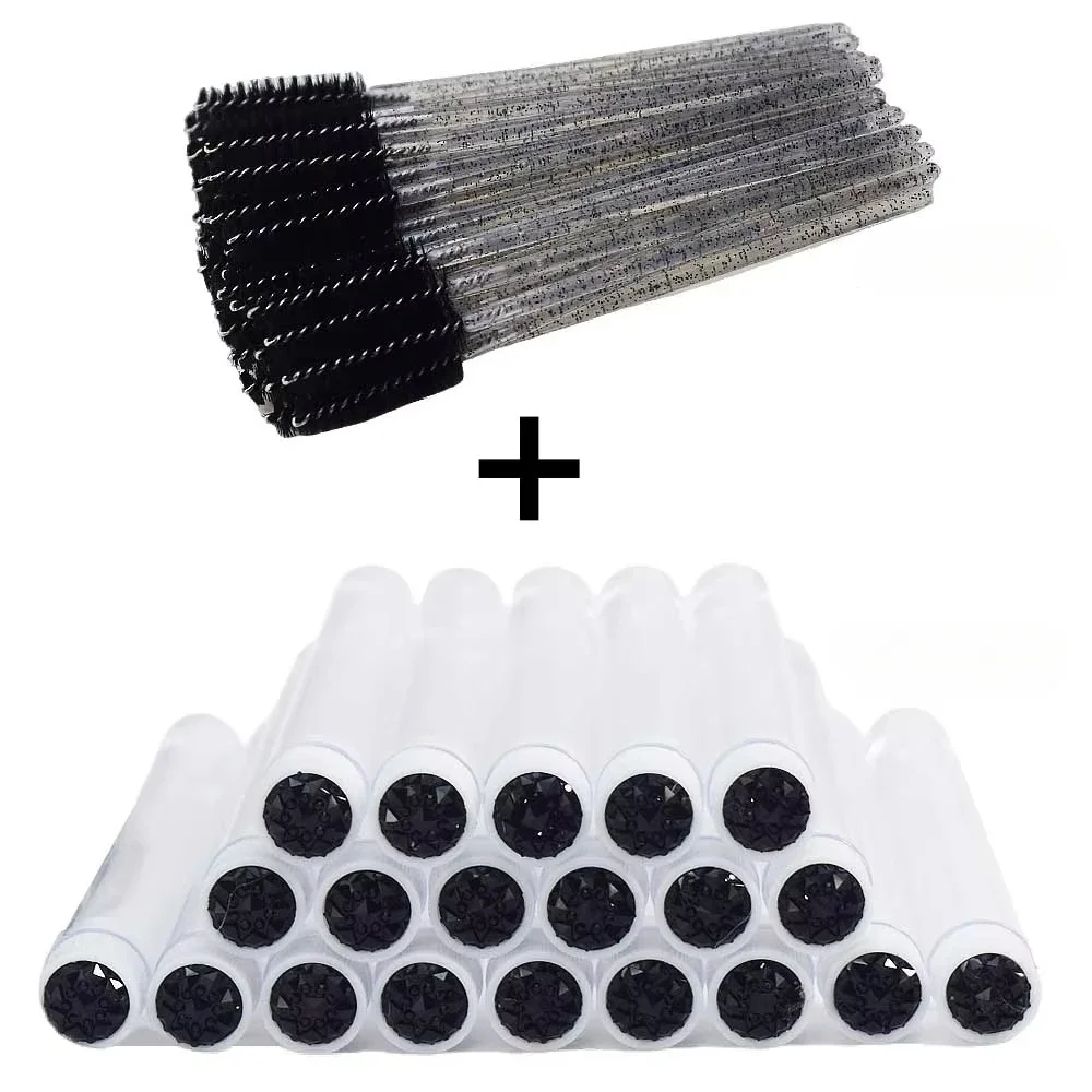 50Pcs Eyelash Brush Tubes with Crystal Mascara Wands & Eyebrow Comb Spoolies - Makeup Tools for Lash/Brow Applicators