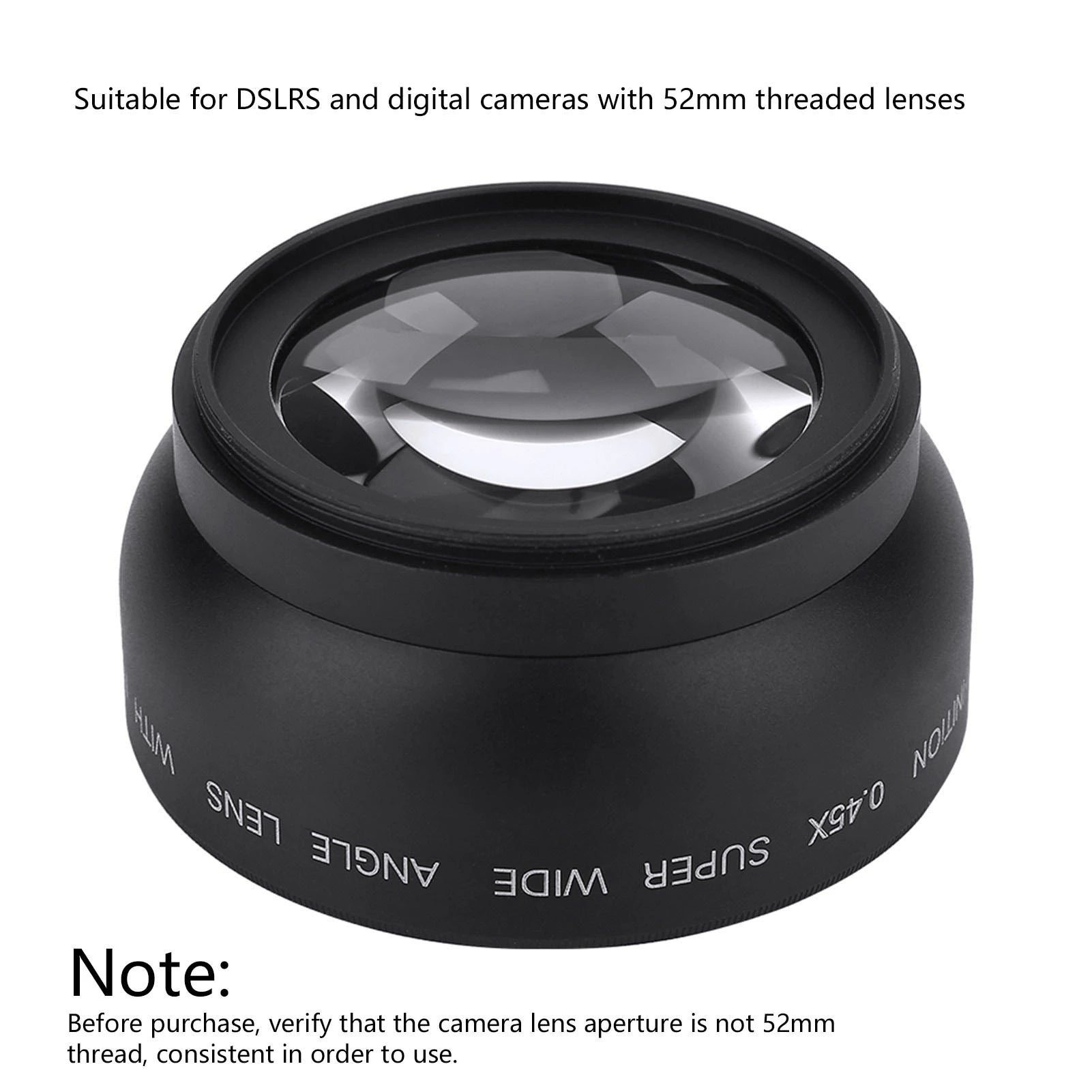 52mm 0.45X Wide Angle Universal Conversion Macro Lens for DSLRS and Digital Cameras Camera Lens Conversion Lens Wide Angle Lens
