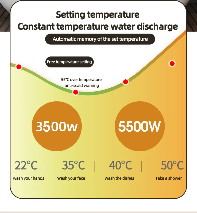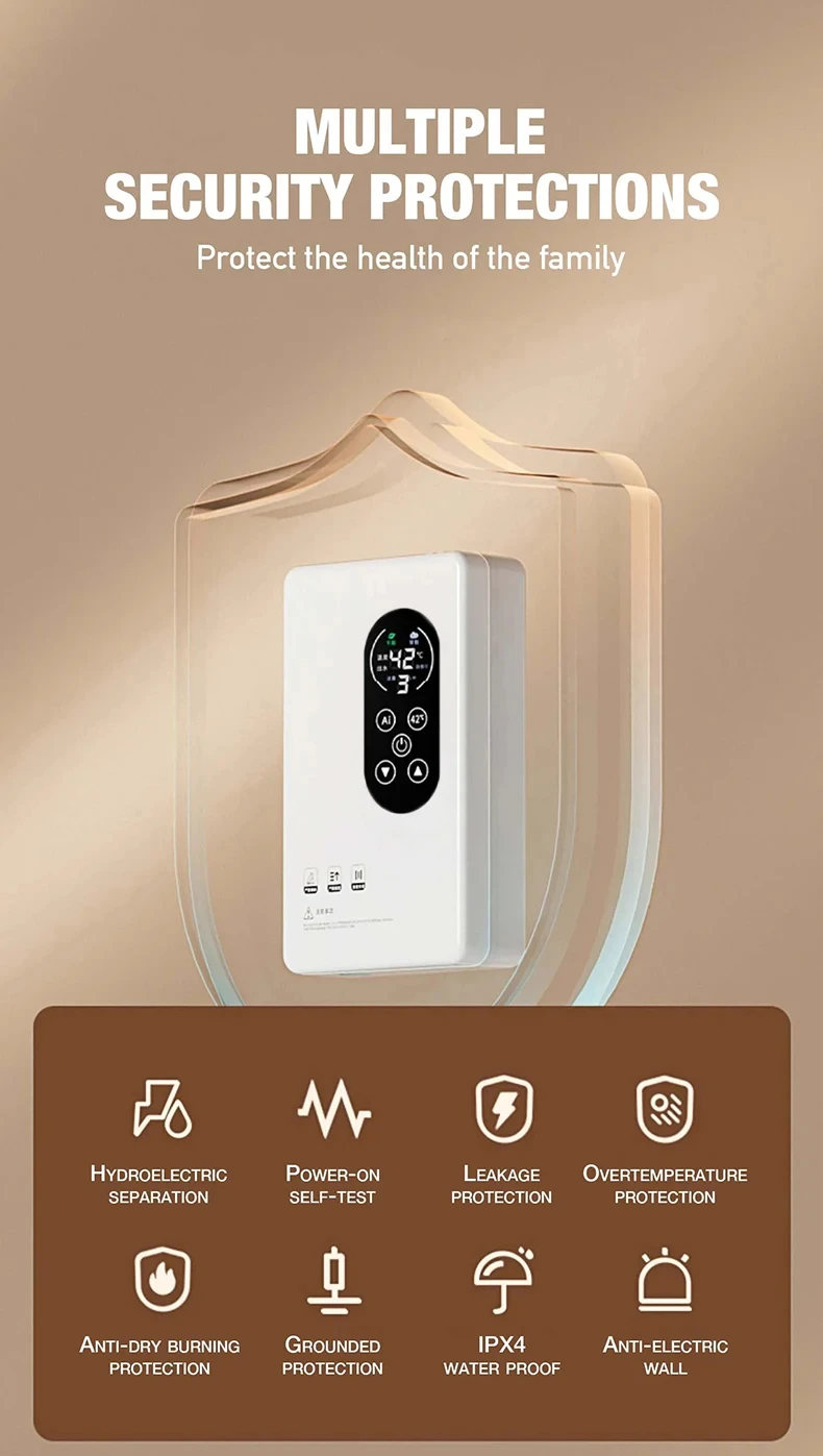 1. AI thermostatic - The power can be automatically adjusted according to the temperature of the incoming water to reach the temperature you set and energy saving.