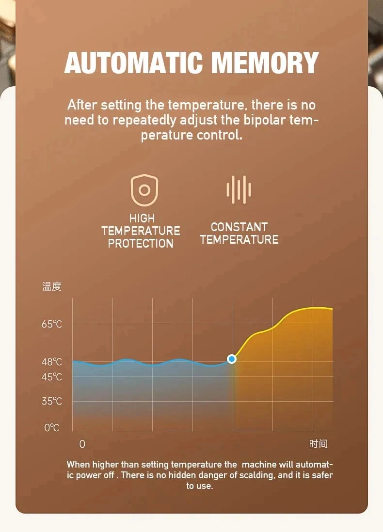 4. AUTOMATIC MEMORY - After setting the temperature, there is no need to repeatedly adjust the temperature.