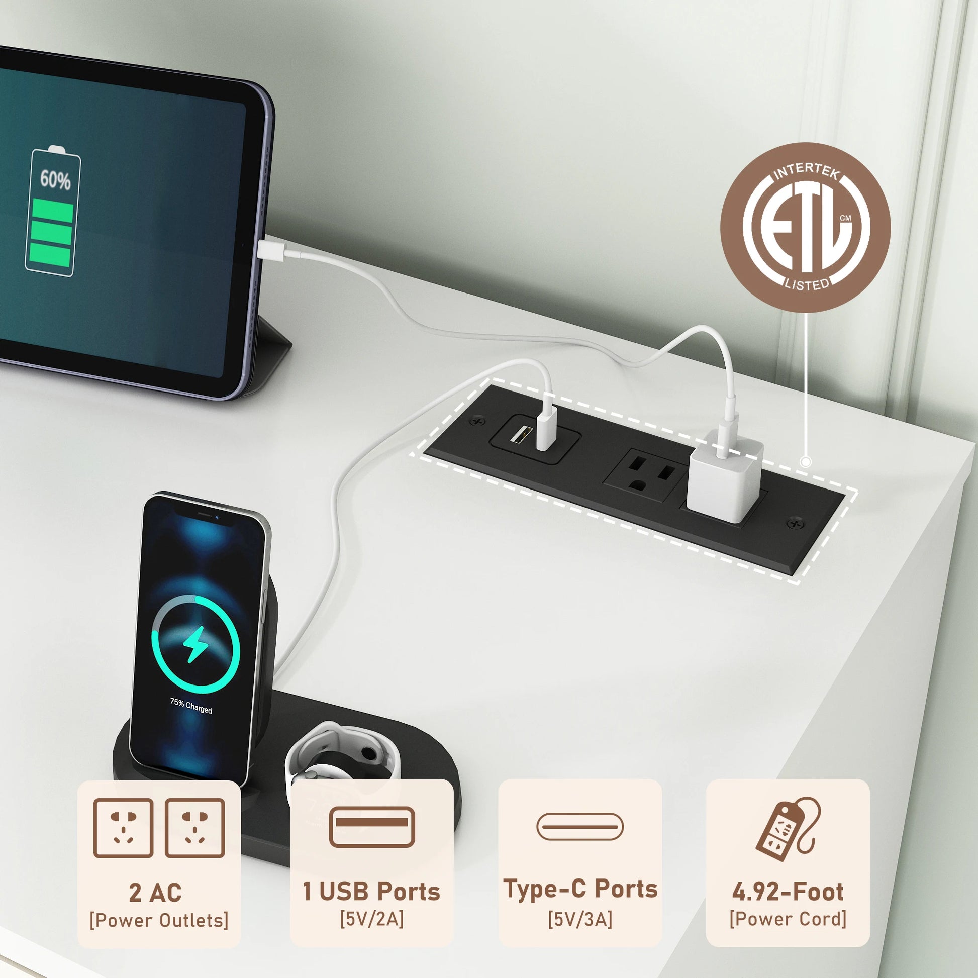 6 Drawers Dresser w/Power Outlet, 59" Long Wooden Dresser Chest, 60000-Colors Lights for Bedroom, Metal Handles of Drawers
