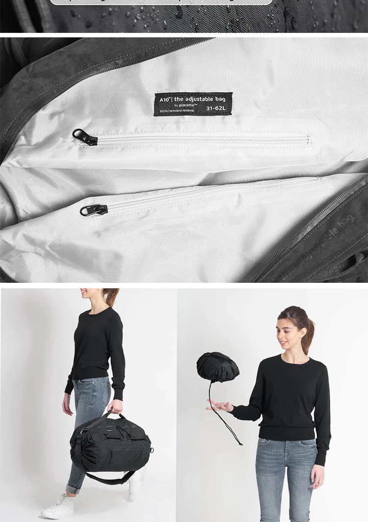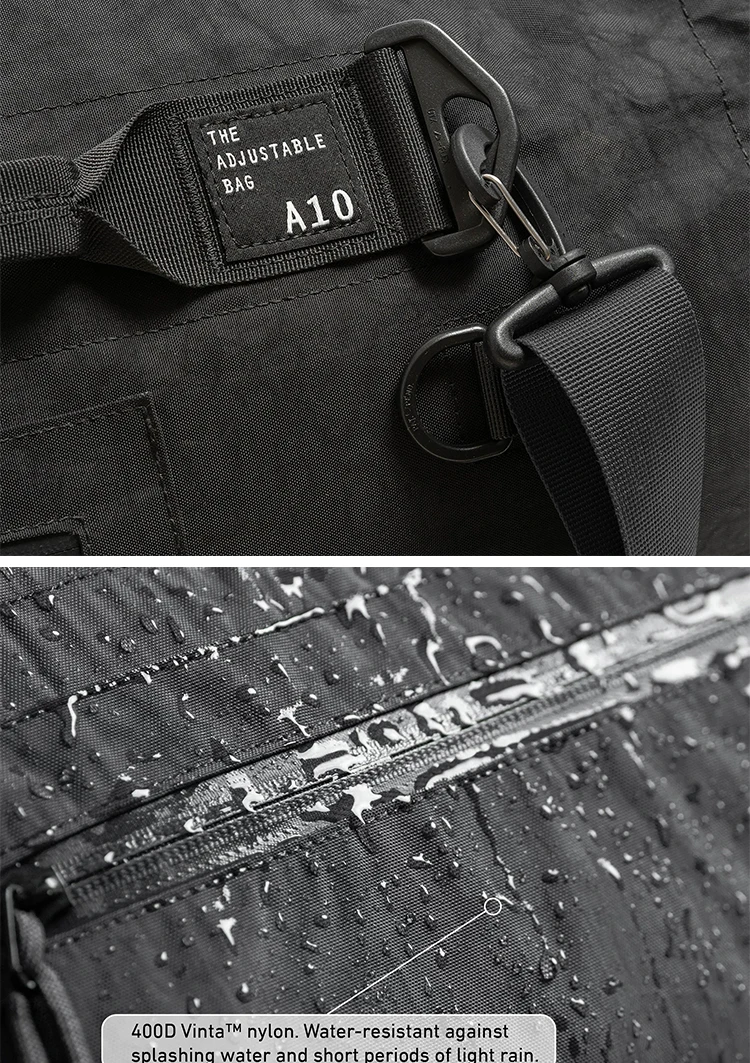 The A10 is a versatile, expandable bag that adapts to all your needs. With 3 sizes and 10 configurations, it's perfect for day trips, weekends, or longer getaways. Its single strap or backpack options will provide you with the choice and comfort you need.
